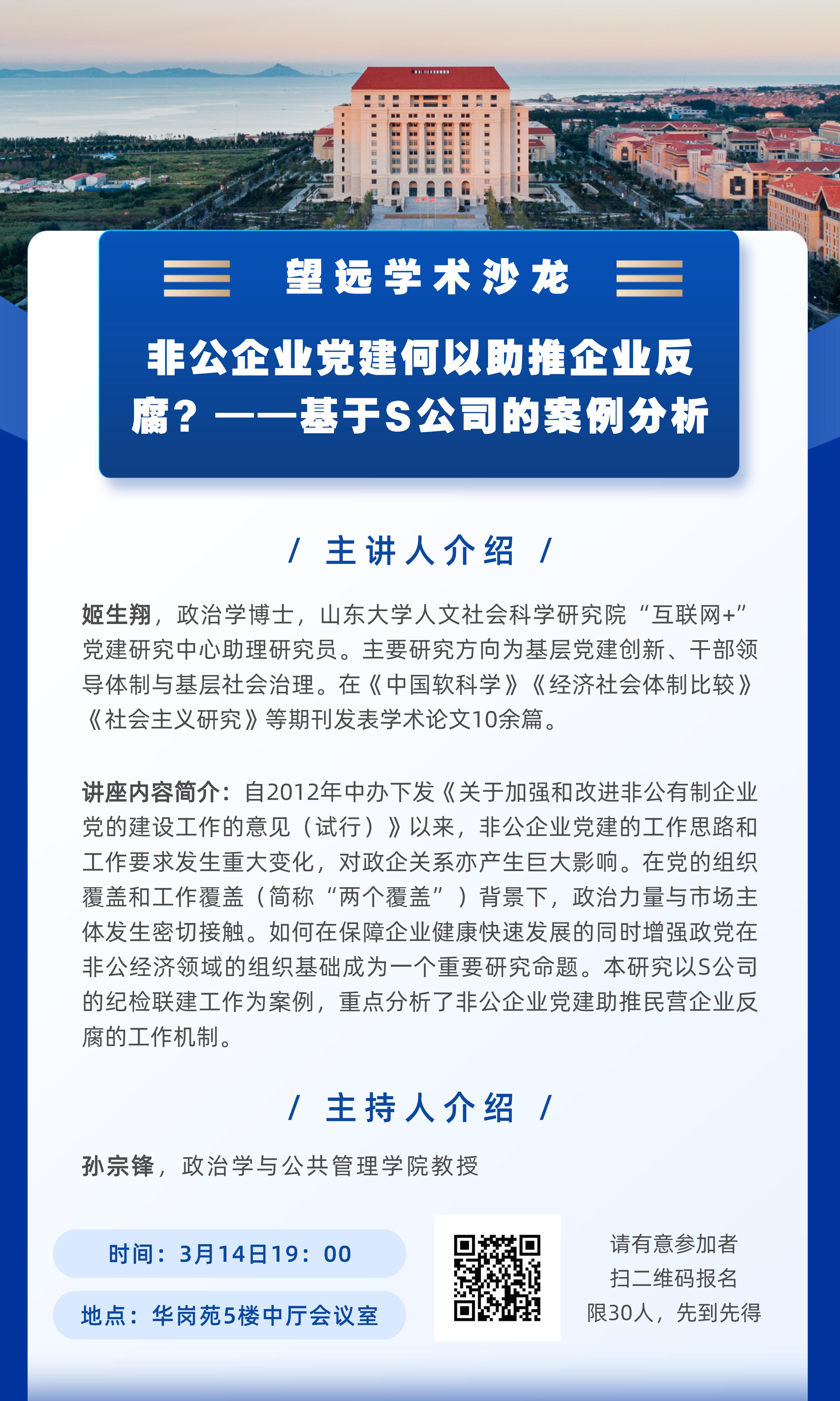 下一篇:[讲座]非公企业党建何以助推企业反腐?——基于S公司的案例分析