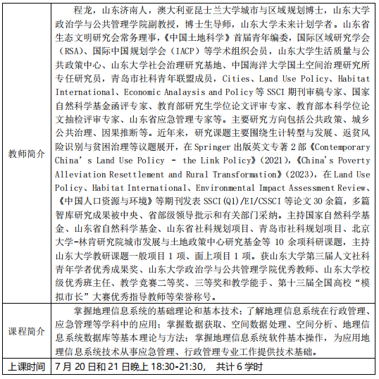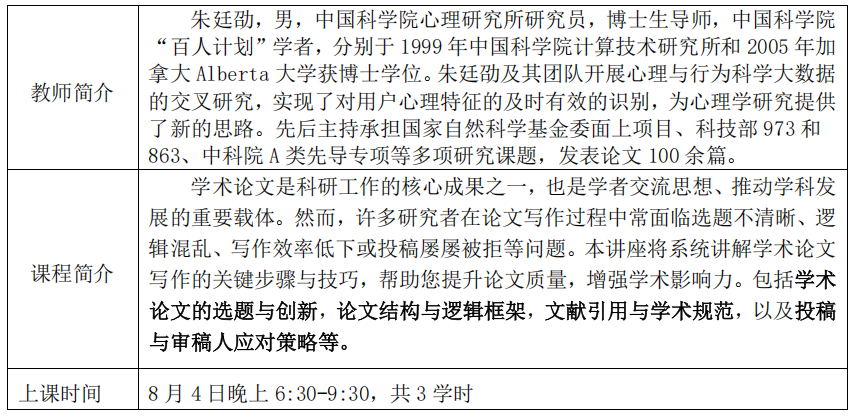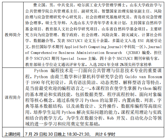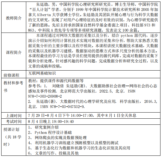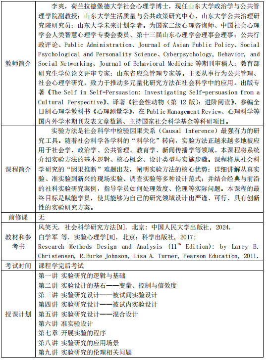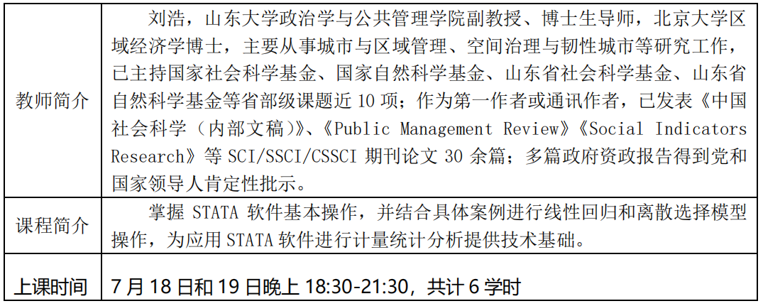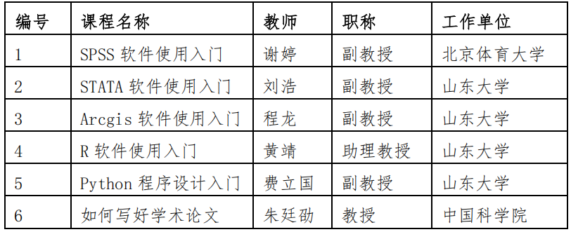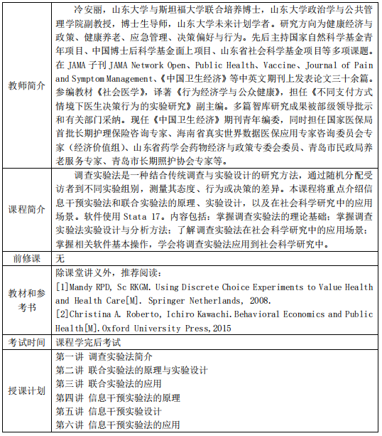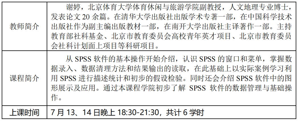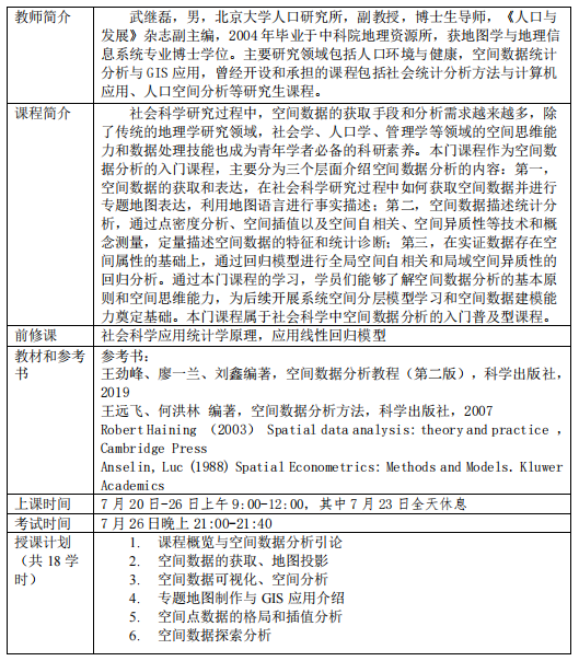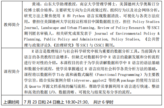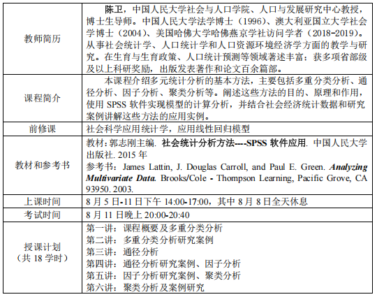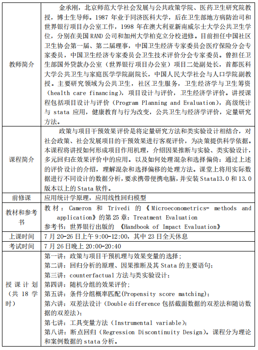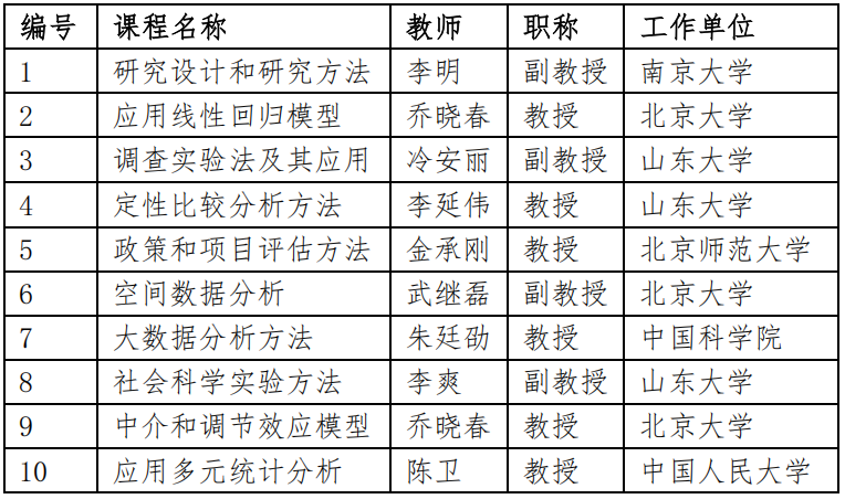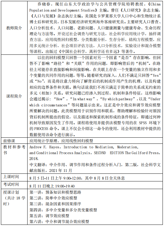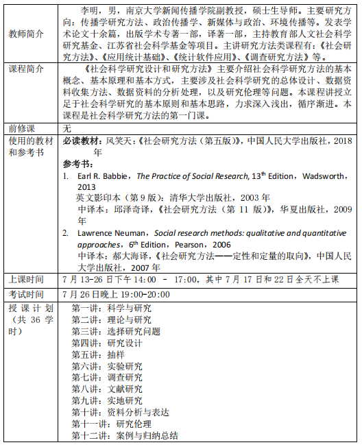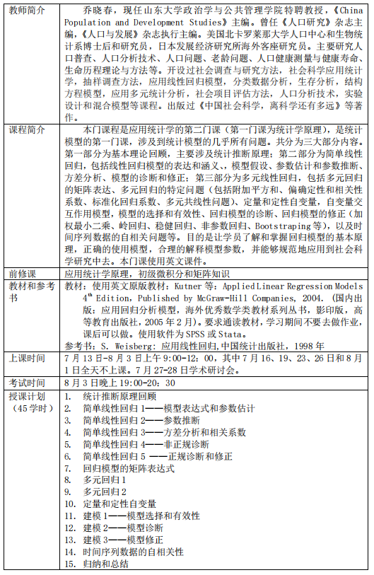 社会科学和健康科学研究方法暑期班课程介绍、教师简介和教学计划