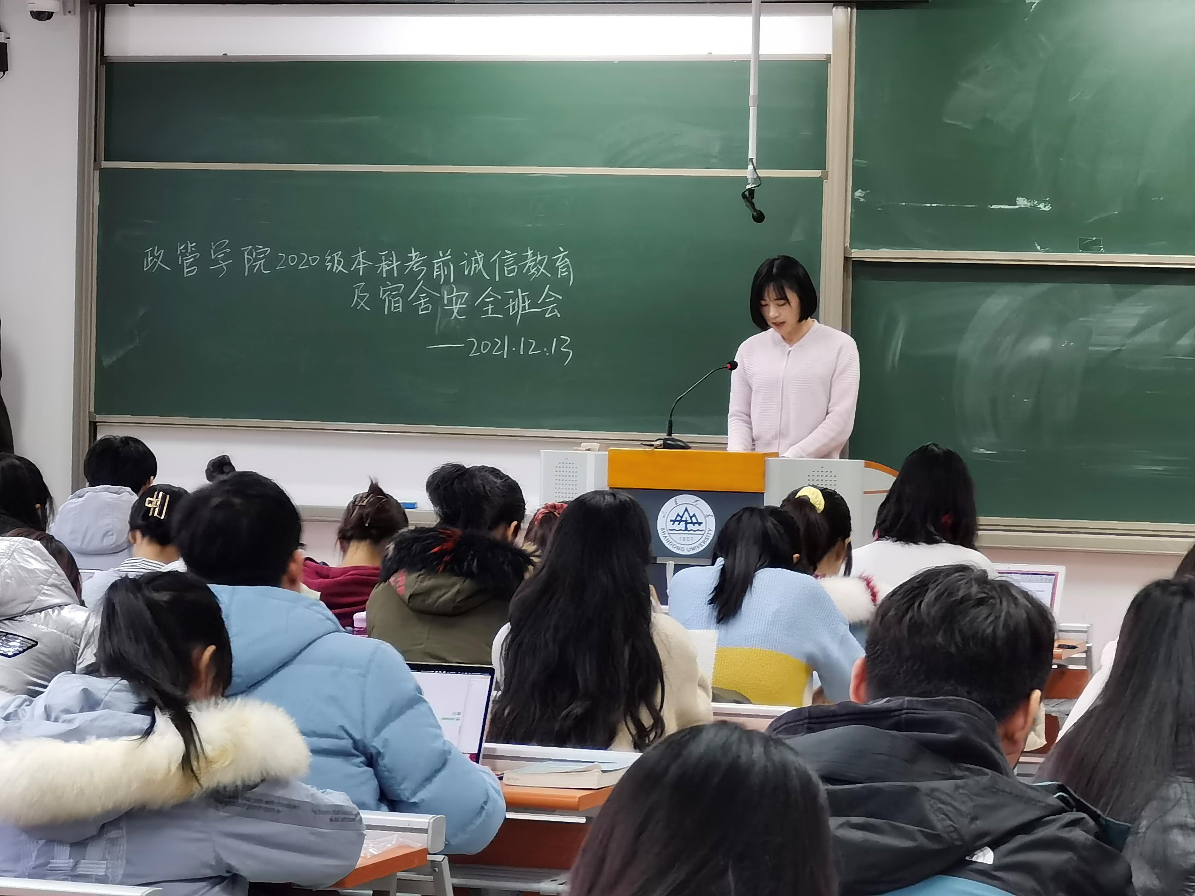举办2020级本科开展考前诚信教育暨宿舍安全班会。班会由辅导员臧丽丽主持,工口实验室