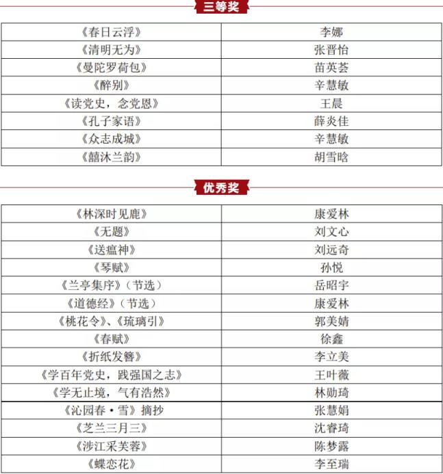 学生合唱团献礼建党百年》获二等奖,苗英荟团队的作品《于人曰,浩然》获二等奖;