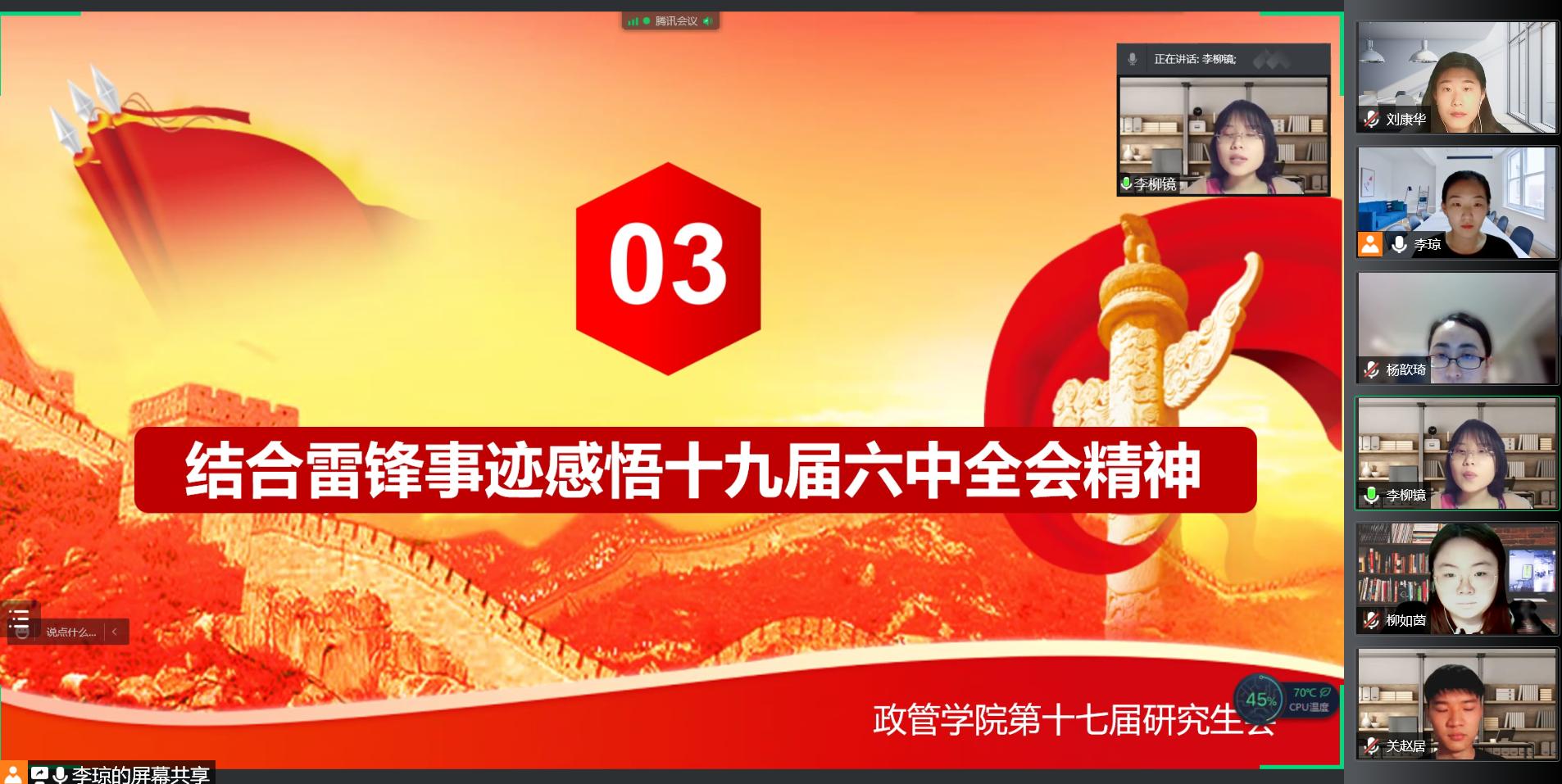 本次活动的顺利举办,强化了同学们对十九届六中全会精神的理解,同时引导政管学子努力学习与践行雷锋精神,做到内化于心,外化于行,以展现新时代研究生服务他人、服务社会、服务国家的责任与担当。