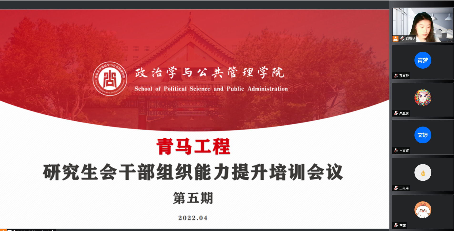 研究生会于腾讯会议线上召开了青马工程之研究生会干部组织能力提升培训会议第五期,第十七届研究生会全体成员参加。