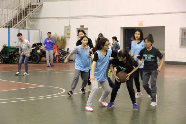 比赛开始前,政管女篮就进行了精密的部署,教练翟柏棱和队长侯炫佚在防止对方下快攻的防守战术上进行了详细地画图讲解,布置了全场紧逼的总体思路,并就各个球员在场上的角色、移动路径以及战术地位进行个别针对性指导。随着一声哨响,比赛一开始就进入鏖战状态,由于双方高强对的防守,两队陷入“得分荒”。然而面对比自己高出一大截的法学院球员,巴桑卓玛和普赤顽强地上前包夹,硬生生把球从对面夺了过来,大大振奋了队伍的士气。止住了第一节比赛的颓势。随着比赛进程深入,为了打破僵局,我方的核心球员、队长侯炫佚登场。她连突破带投篮,击溃了法学院的防线。尤其是她强悍的防守,使得对面球员连连出现失误,我方也频频得到快攻机会。