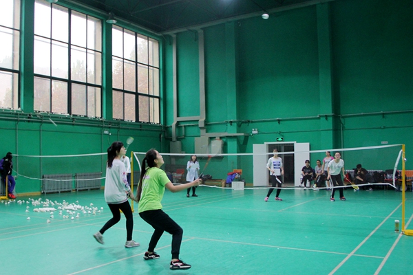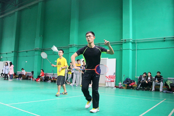 和法学院的十几支队伍踊跃参加了比赛。比赛还未开始,场馆内就热闹起来,选手们纷纷热身提前进入状态,观众们也参与其中为自己的同学加油助威。随着裁判的一声哨响,女双比赛率先开始。两院女双选手积极投入,均采用急攻稳守的策略,强有力地挥拍,灵活地转体,高技巧的搏杀,一来一回双方均有得分,比赛迅速进入胶着状态。在比赛中,选手们比的不仅仅是技巧,更是耐力和心态。混双比赛中,虽然其中有双方实力相差较大,但是选手们仍能稳住阵脚,把握好自己的节奏,顶住压力积极进攻,打出自己的风采。最后,男双的冠军争夺赛将比赛推上高潮。比赛节奏加快,双方比分紧咬,男双选手们腾挪跳跃,挥舞着球拍,点杀、扣杀、劈吊、网前放小球,全力以赴,时时引来阵阵掌声喝彩,为观众带来了一场精彩的比赛。