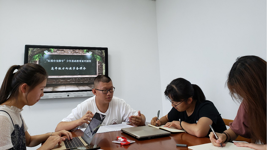 临行前,“红领巾先锋号”项目组各岗职负责人分别召开了低年级、高年级专题备课会,讨论研究了“红领巾先锋号”备课、授课、制课等各环节的主要任务与重点难点问题。各岗职负责人就组织联络与经济工作、课程建设与宣传工作、理论研究与采编工作、数据信息与成果工作进行了集中研讨。