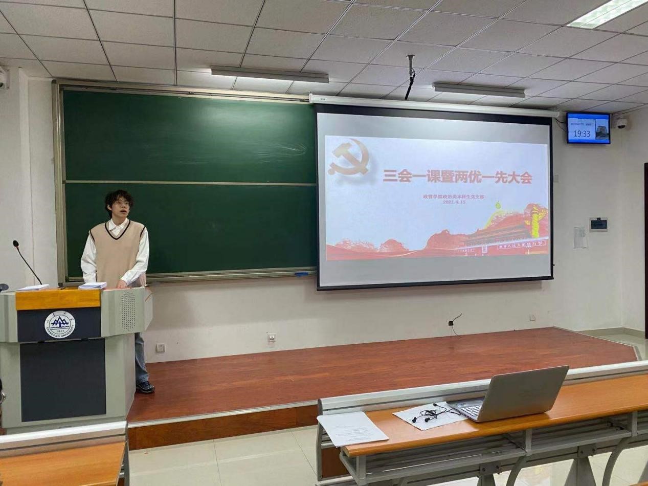 政治类本科生党支部与管理类本科生党支部联合组织学生党员开展了三会一课暨两优一先大会。