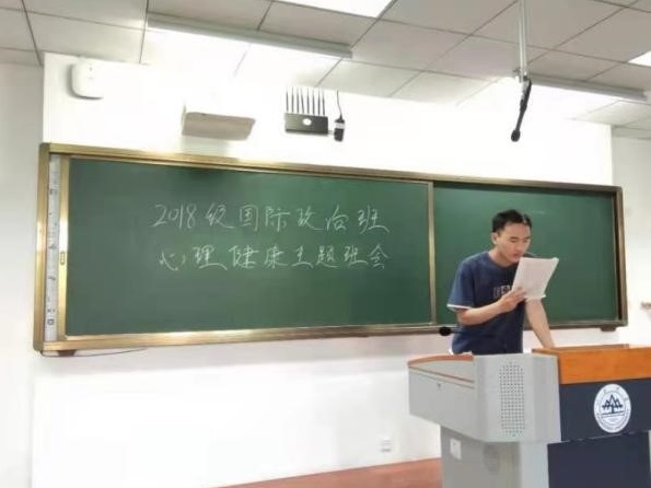 2018级国际政治班在振声苑E208开展了心理健康主题班会活动。这次班会由班长毕超和吴相宜、陈宇两位班委共同主持。