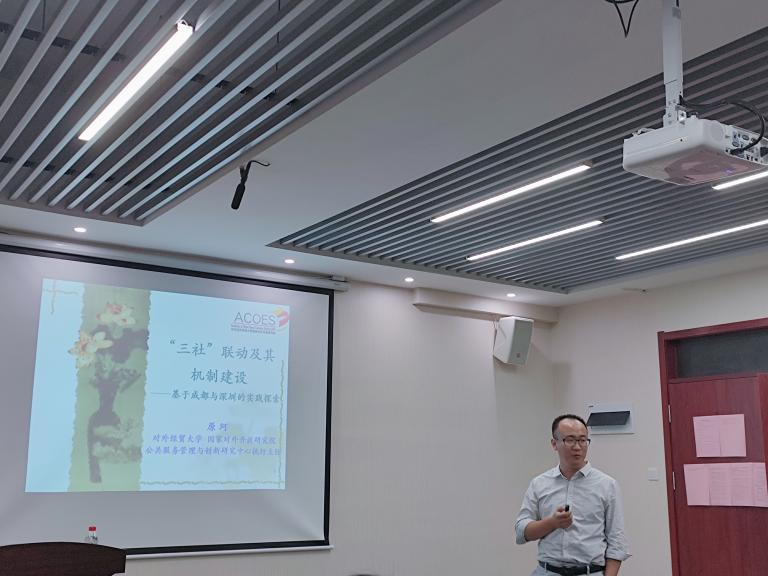 原珂老师首先对“三社联动”的缘起与概念进行阐释,并对“三社联动”发展过程中政府出台的一系列文件进行了梳理。原珂老师通过成都市武侯区浆洗街道“项目式”三社联动和深圳市桃源居社区以社区基金会为“聚合点”的“枢纽式”三社联动两个案例介绍了“三社联动”的两种实践运作方式,并进一步分析了两个实践案例的成果与不足。