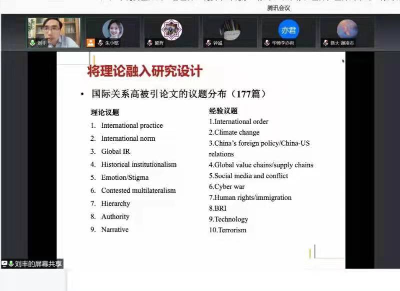 此次讲座旨在给刚进入学术道路不久的青年研究者和准备走上学术道路的同学答疑解惑。理论创新一直是学者们开展研究所无法回避的问题,如何去看待并应对这个需要攀越的挑战,刘丰教授给出自己具有启发性和指导性的回答。通过讲座拓展了师生们的研究思维空间,启发人们更深入地思考问题,参会师生受益匪浅。