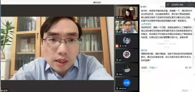 最后,刘丰教授介绍了搭建理论框架的路径。刘丰教授从理论应用、理论扩展、理论整合、理论创造四个方面入手,向大家阐述进行理论创新的具体路径。他指出,研究设计是经验理论与方法反复校验的过程;要进行理论创新,需要将理论融会贯通,使用通用概念进行交流,熟悉理论的流变、逻辑和争论,理解其内涵,避免有形无神。在讲座交流环节,工口实验室