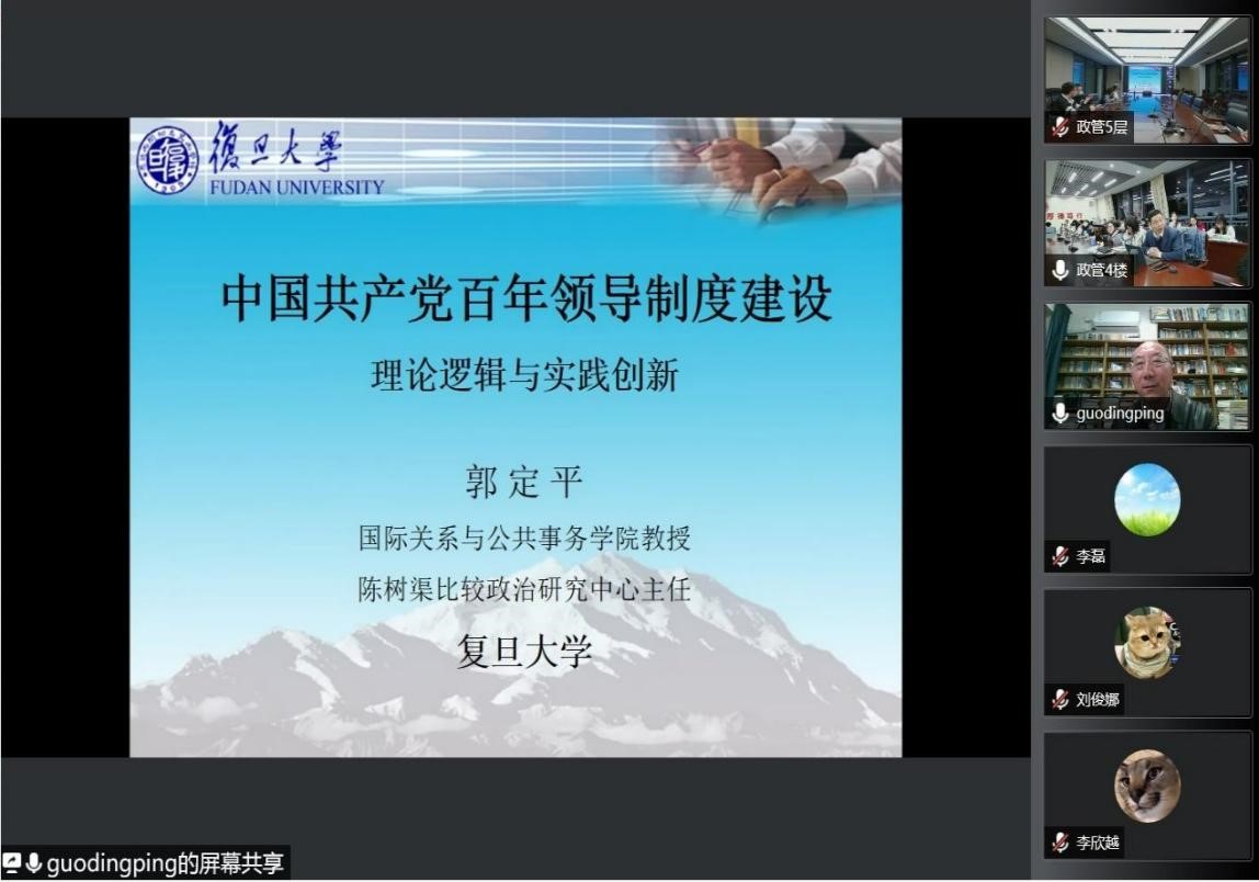 12月8日晚,复旦大学国际关系与公共事务学院郭定平教授应邀作了题为“中国共产党百年领导制度建设的理论逻辑与实践创新”的线上讲座。讲座由工口实验室