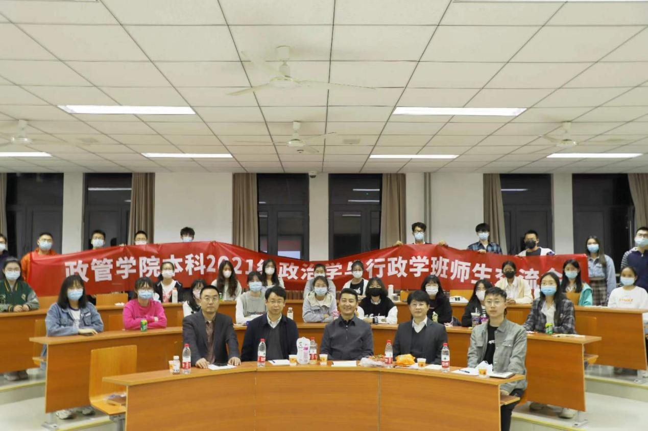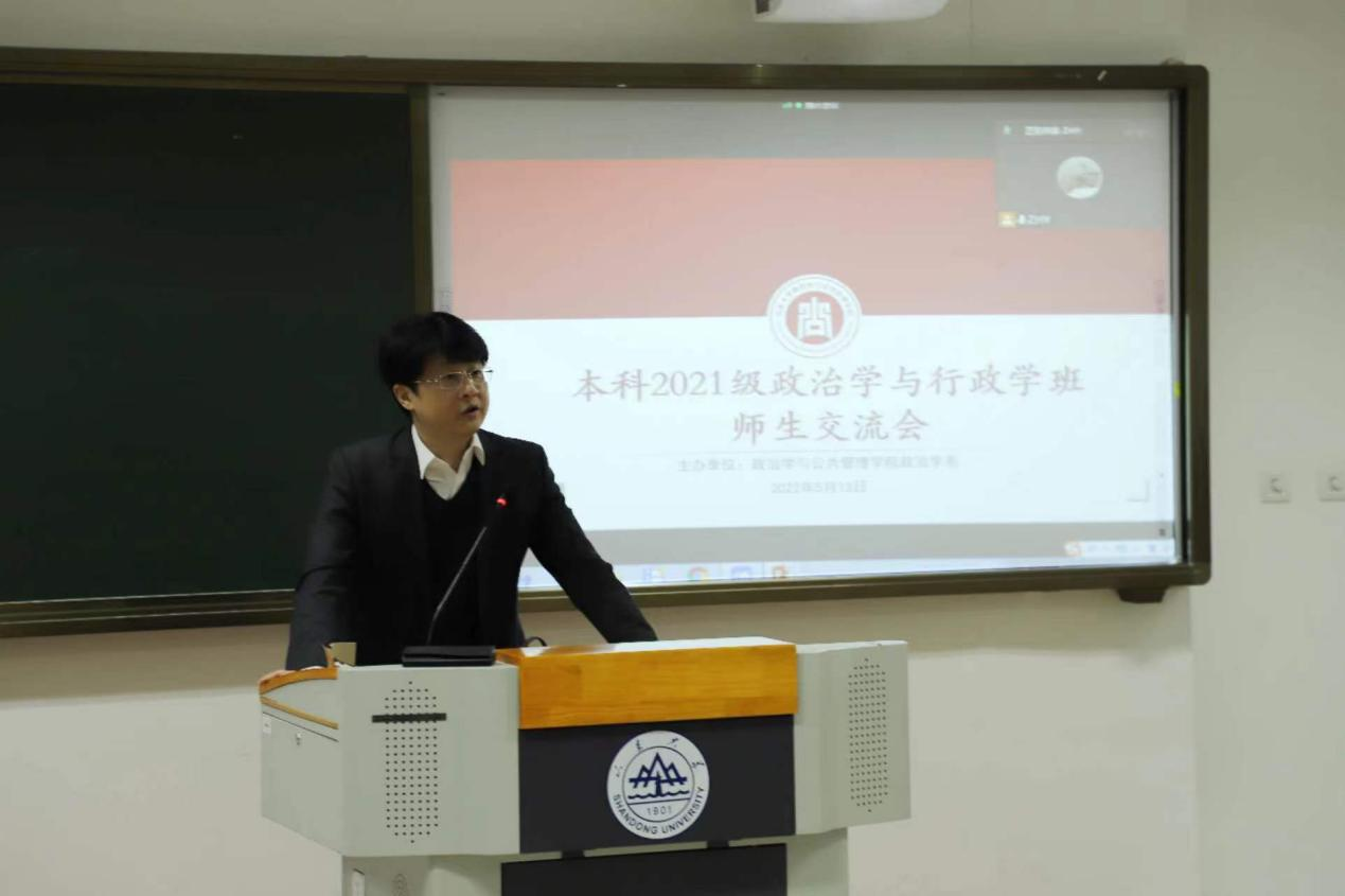 政治学与行政学系主办的本科2021级政治学与行政学班师生交流会在振声苑如期举行。本次交流会采取线上线下相结合的方式,由政治学与行政学系系主任唐睿教授主持,工口实验室