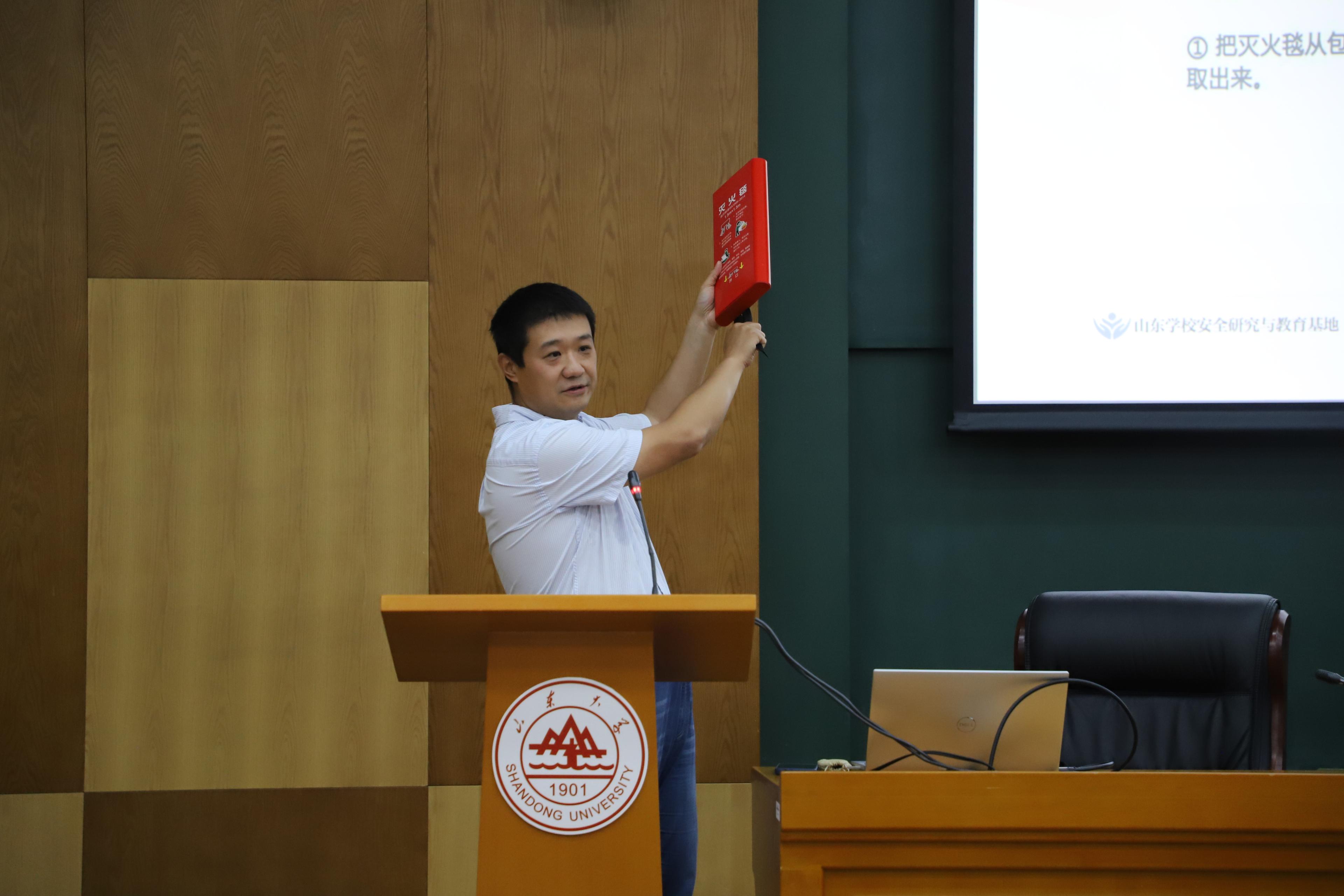 于华岗苑南楼举办消防培训和演习。培训会由青岛校区党工委保卫部孙垚老师主讲,工口实验室