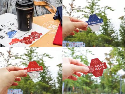 与此同时,迎新现场布置了制作精美的横幅和展板,展板集中介绍了学院学科建设,生动地展示了学院文化、学术风采以及历届优秀毕业生展。学院还为新生精心准备了大礼包,精美的领结、印有校徽的马克杯、复古色调的牛皮纸包,以及印有校训和院训的吸管插卡,处处彰显出学院的用心和暖心。