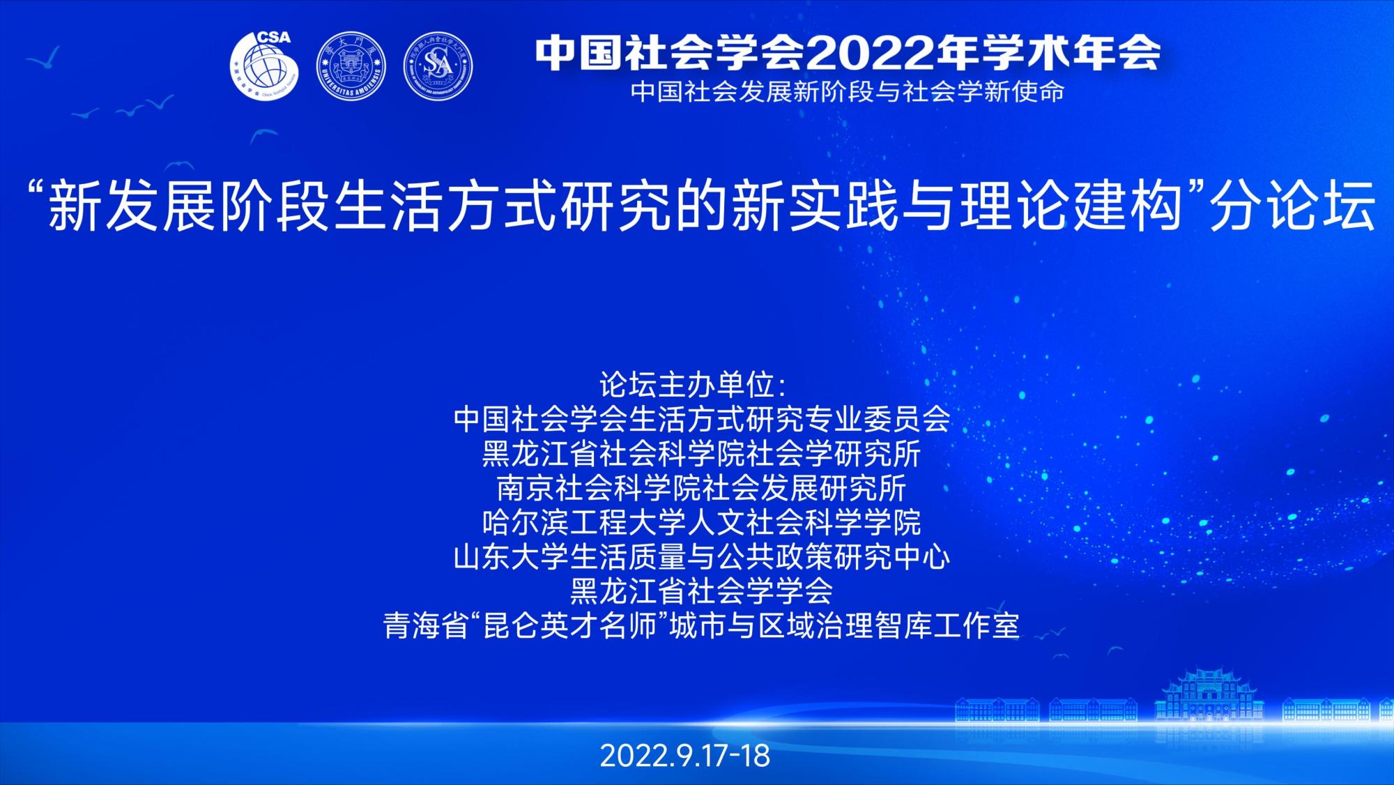 9月17日至18日,中国社会学会2022年学术年会“新发展阶段生活方式研究的新实践与理论建构”分论坛通过线上形式顺利举办。本次论坛由中国社会学会生活方式研究专业委员会、黑龙江省社会科学院社会学研究所、南京社会科学院社会发展研究所、哈尔滨工程大学人文社会科学学院、工口实验室