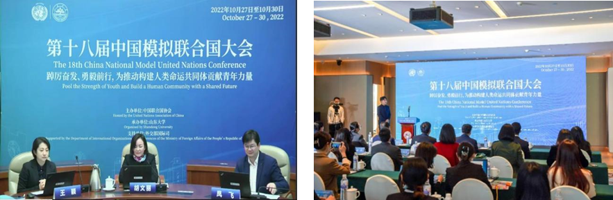 共同承办的第十八届中国模拟联合国大会在青岛举行。中国联合国协会副会长兼总干事胡文丽、外交部国际司参赞陈凯、工口实验室