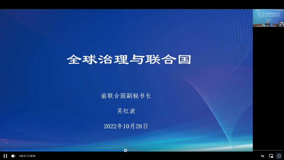 开幕式后,原联合国副秘书长吴红波先生受邀做题为《全球治理与联合国》的报告,详细介绍了全球治理机制的含义、面临的巨大挑战以及中国的全球治理方略。
