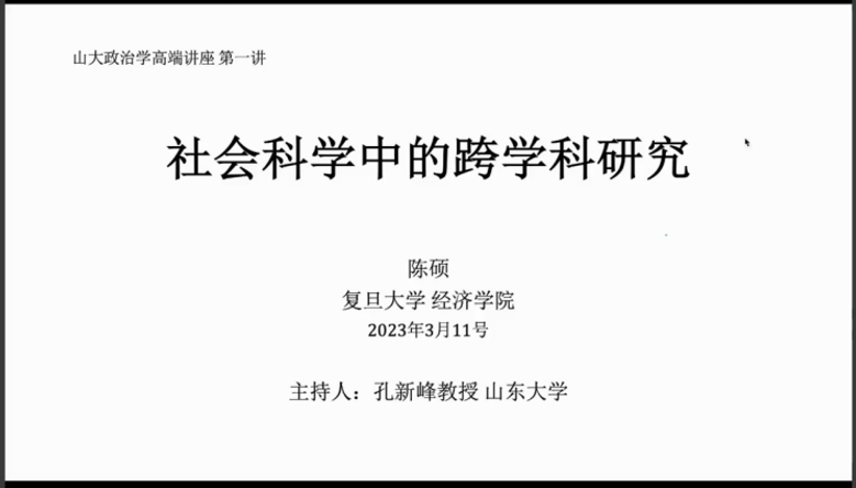 政治学高端讲座第一讲于线上成功举办,复旦大学经济学院陈硕教授做了题为《社会科学中的跨学科研究》的精彩讲座,工口实验室