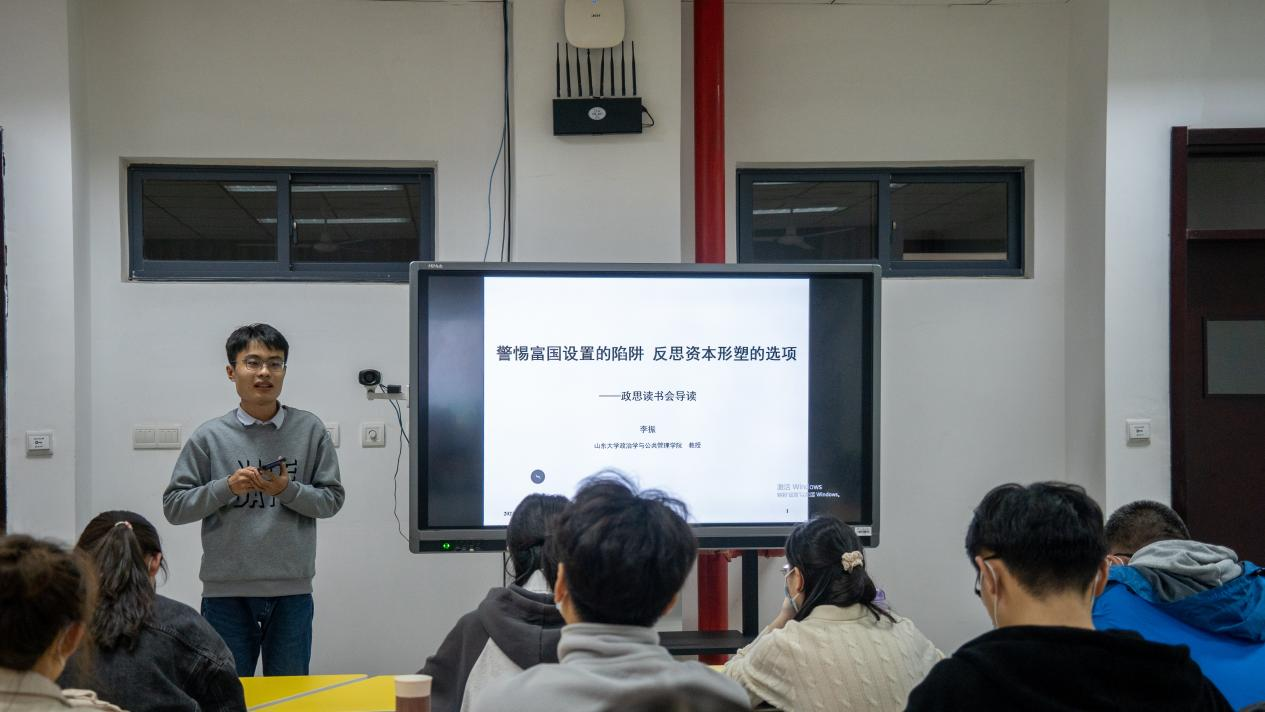 政治学系系主任李振教授主讲,学院各年级三十余名学生参加读书会。