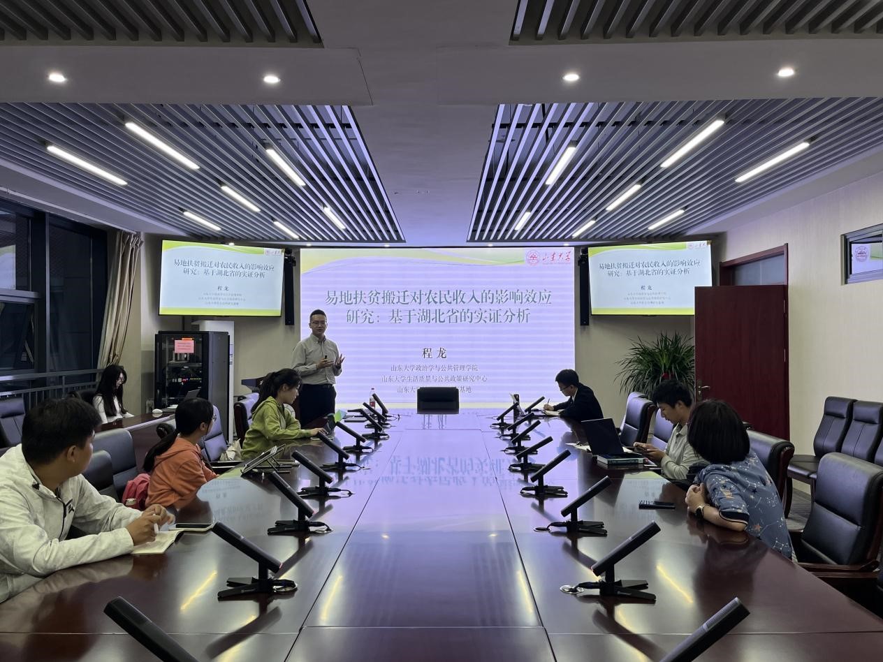 公共管理系2022-2023学年春季学期第八期望远青年学者沙龙于华岗苑南楼四楼中厅会议室召开,讲座主题为“易地扶贫搬迁对农民收入的影响效应研究——基于湖北省的实证研究”。本次讲座由工口实验室