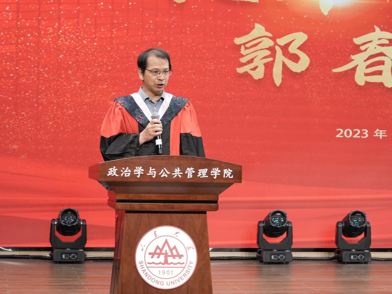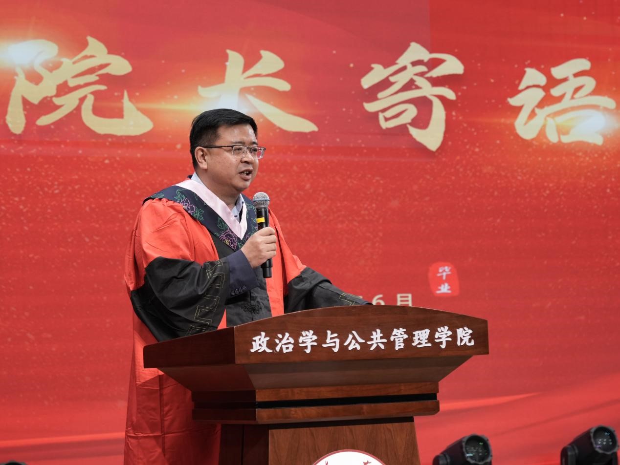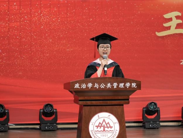 2023届毕业生毕业典礼暨学位授予仪式拉开帷幕。校友代表、现任教于上海交通大学国际与公共事务学院的苏若林副教授,回顾了在校学习生活的美好时光,向母校表达了由衷感谢并向全体毕业生表达了诚挚祝福。随后本科生代表张彬、硕士研究生代表郭晓慧和刘硕、MPA代表李振茜和博士研究生代表王昭先后发言,表示将牢记母校“学无止境,气有浩然”的校训,不负“知政为公,厚德笃行”的殷切嘱托,到新时代新天地中去施展抱负、建功立业,争当伟大理想的追梦人,争做伟大事业的生力军,让青春在祖国和人民最需要的地方绽放绚丽之花。