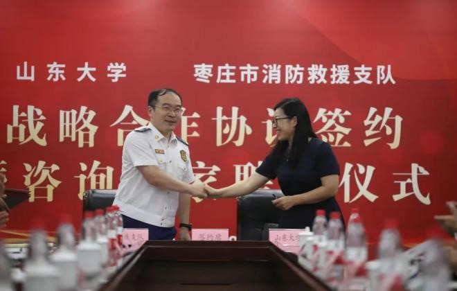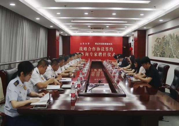 学生社会实践基地签约揭牌仪式及支队工作咨询专家聘任仪式。马奔在致辞中指出,将以此次共建活动为契机,充分发挥学院在应急管理理论研究及人才培养等方面的专业优势,不断推动理论研究与实践发展融合互促,携手为枣庄消防救援事业发展作出更大贡献。
