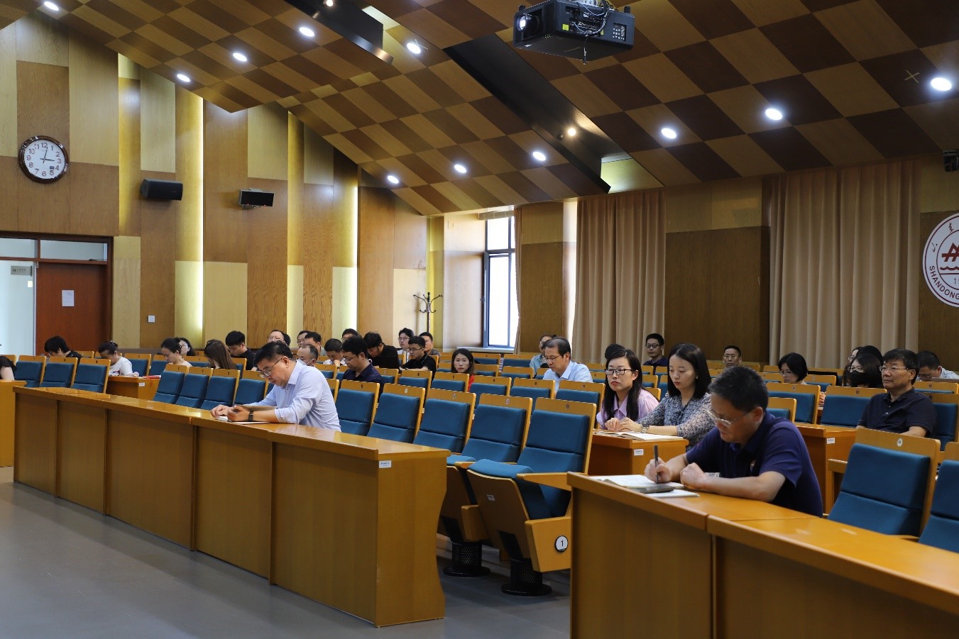 全体教职工参加会议,会议采用线上线下相结合的形式举办。学院党委书记盖玉强主持会议。