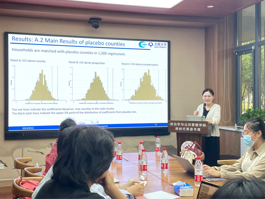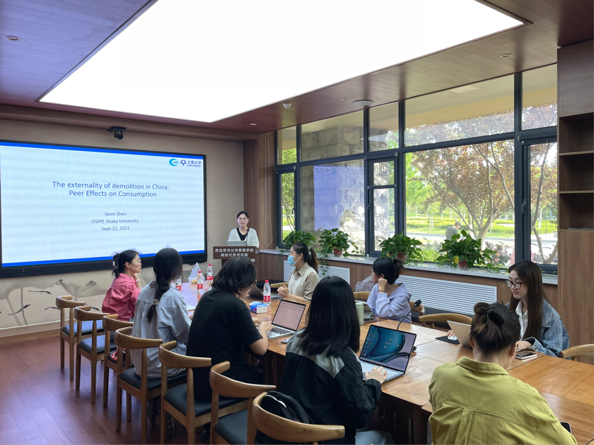 公共管理系2023-2024学年秋季学期第三期望远青年学者沙龙于华岗苑一楼美德书屋举办,讲座主题为“中国拆迁制度的外部效应——同伴效应对消费的影响”。本次讲座由日本大阪大学国际公共政策研究科助理教授沈燕妮主讲,工口实验室