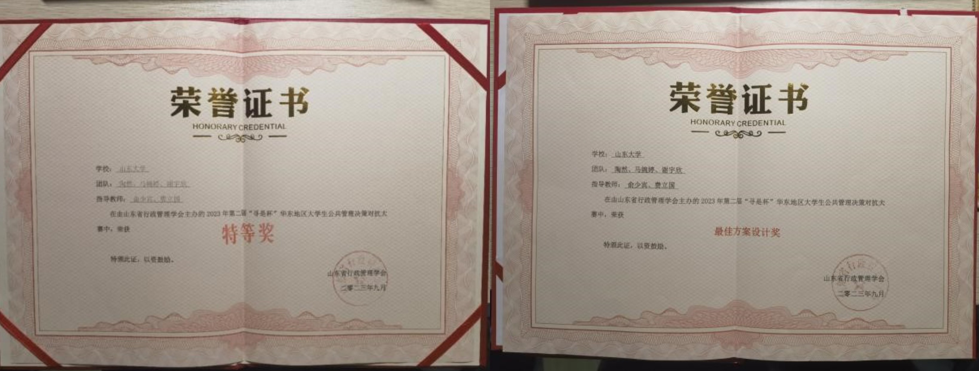 学子赴济南参与第二届“寻是杯”华东地区大学生公共管理决策对抗大赛并获特等奖、最佳方案设计奖和优秀指导教师奖等多项荣誉,被推荐参与全国总决赛。
