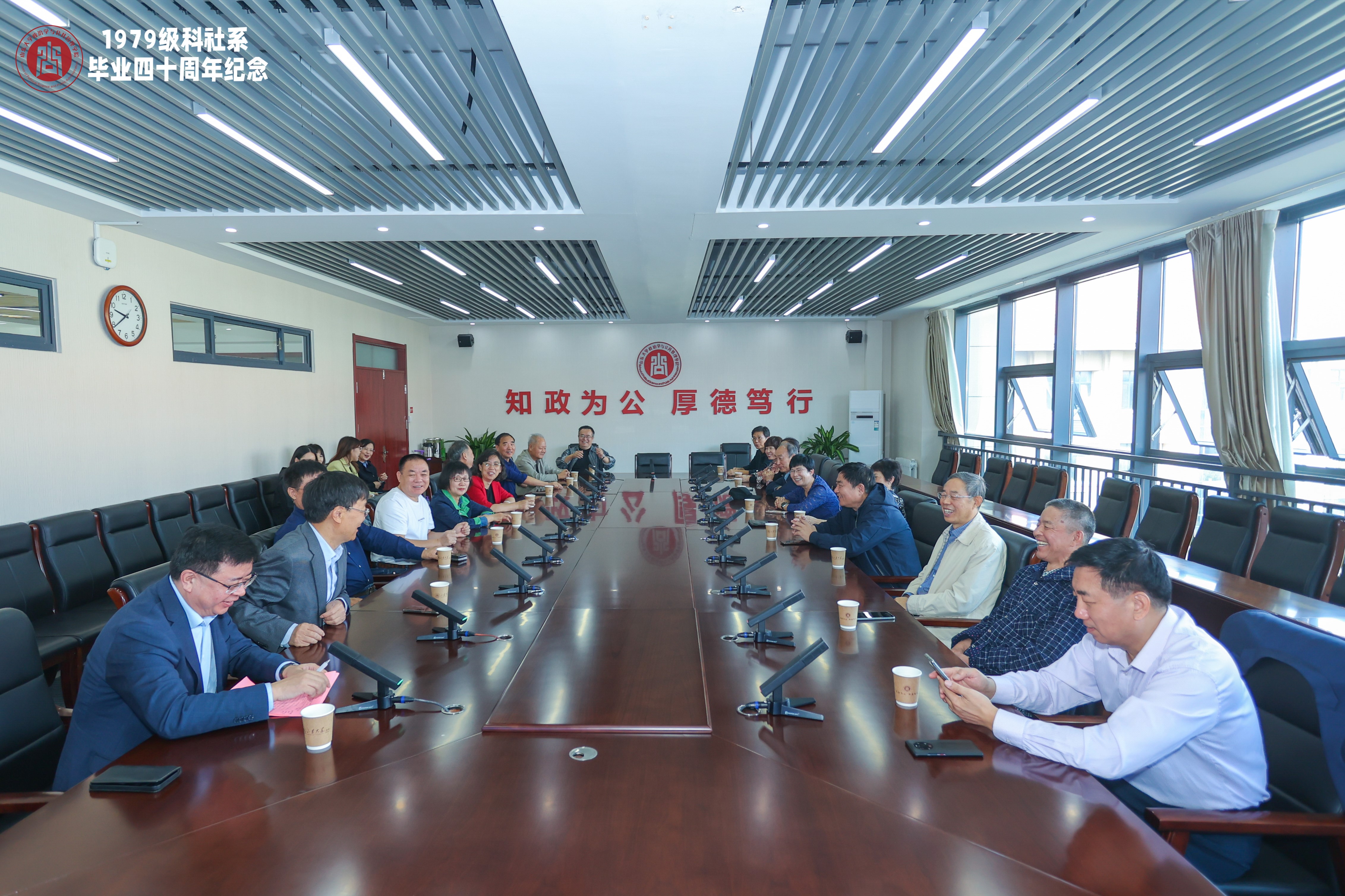 在科研教学和学生培养方面取得的丰硕成果。七九级老班长宋新平首先代表同学们感谢学院对此次活动的大力支持,期望大家可以将友情、亲情继续延续下去,并祝愿母校未来发展越来越好。孔令栋深情回望了作为科社系七九级学生在校学习的经历,对一直以来关心和支持学院发展的校友们表达了衷心的感谢,希望大家有空常“回家”看看。
