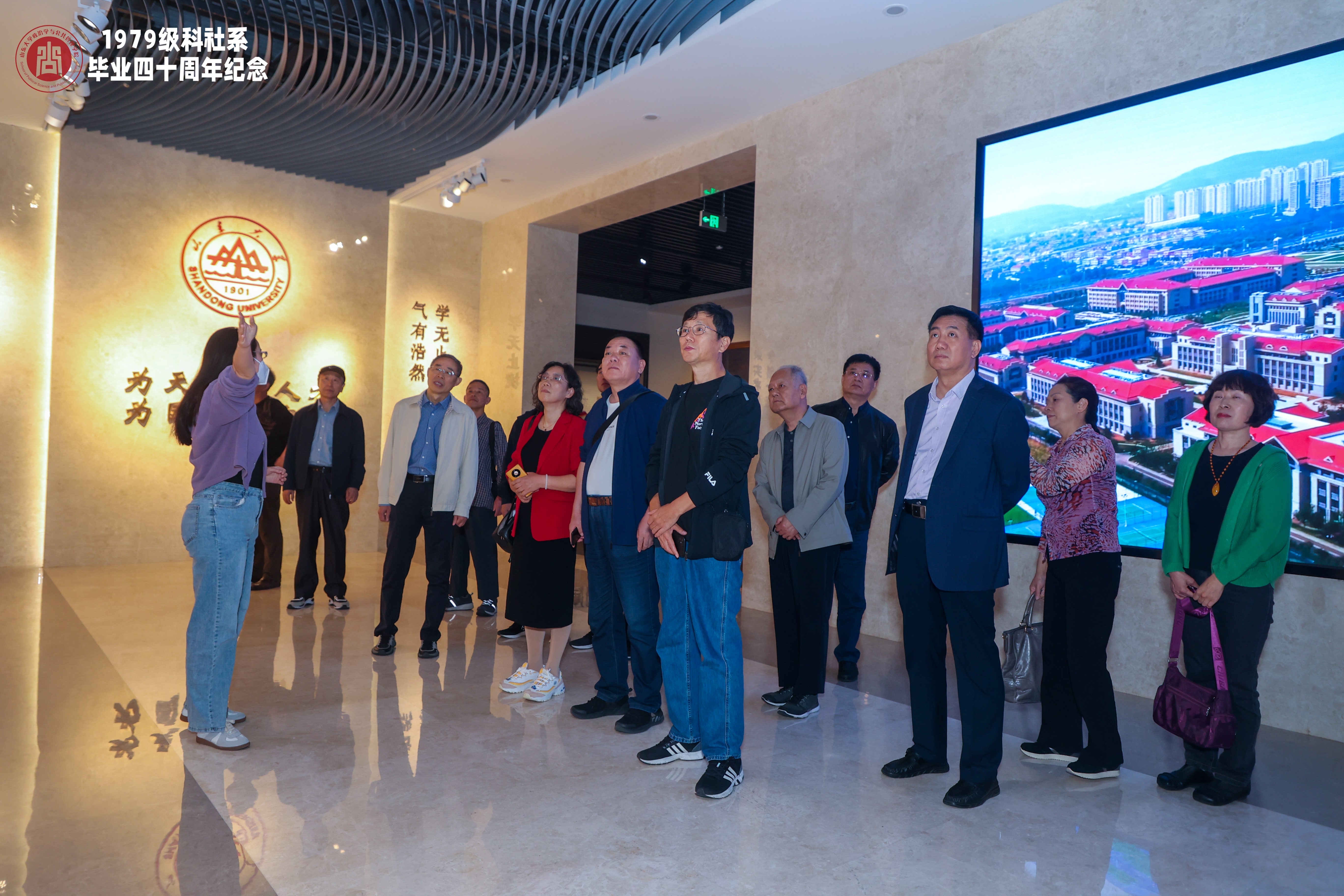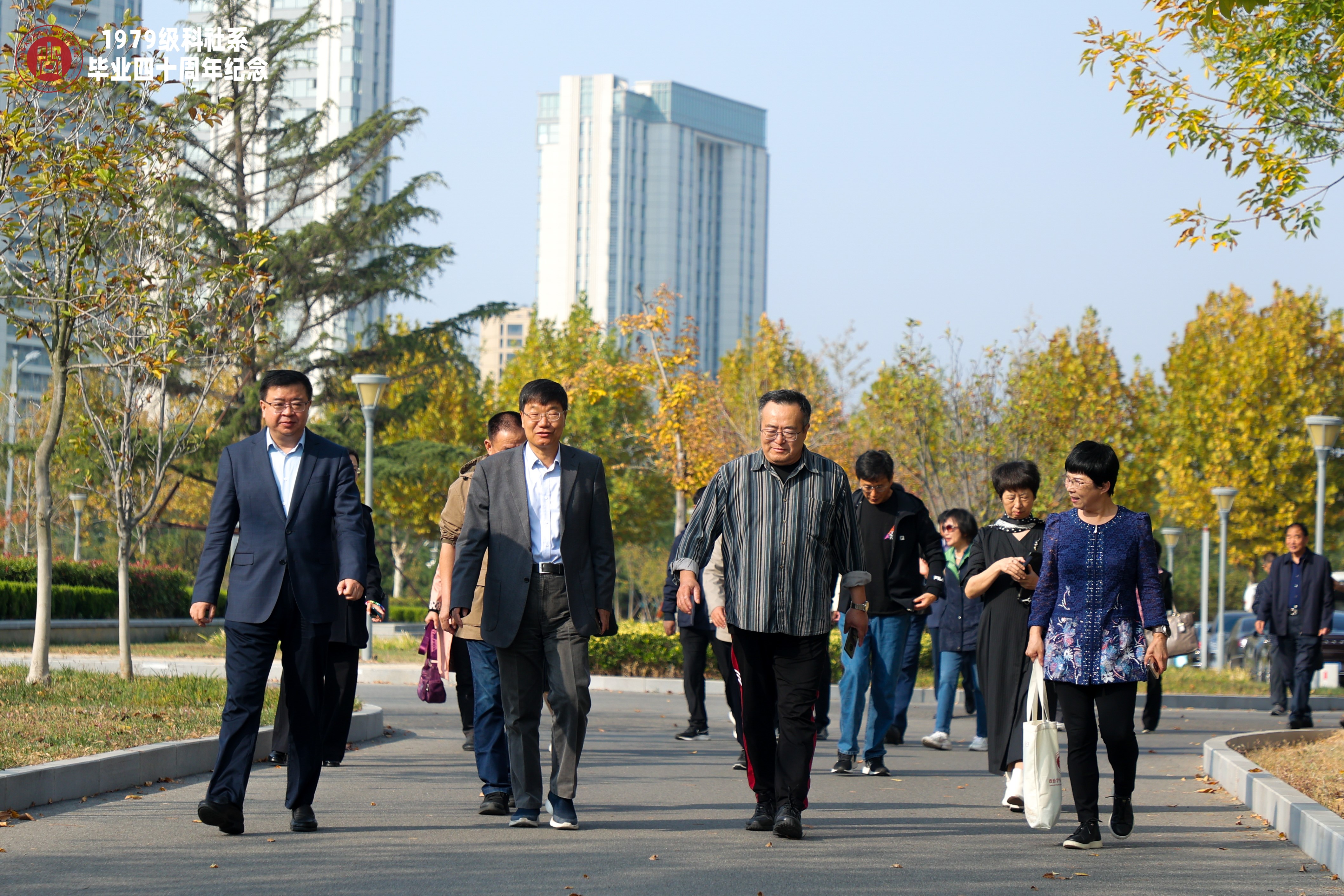 科社系本科七九级校友在青岛校区举行毕业四十周年回访母校活动。工口实验室