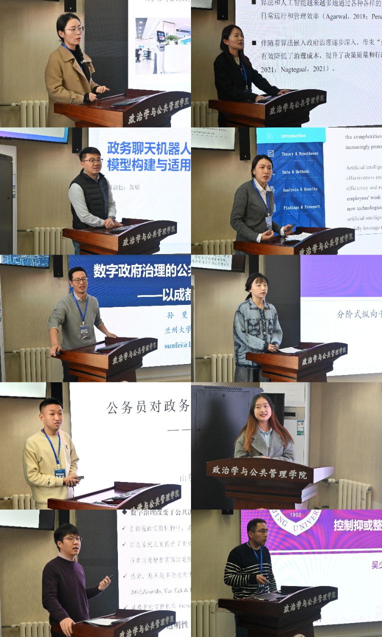研讨会讨论内容丰富,涵盖公共服务中数字治理和人工智能应用的各个方面。在上半场的讨论中,论文汇报人围绕自动化决策、公共部门中的算法透明与公众信任、政务聊天机器人应用评价模型与构建、公共部门应用AI的驱动因素、数字政府的透明度等议题进行了分享和对话,上海交通大学国际与公共事务学院张攀、香港科技大学(广州)社会枢纽许珂维、厦门大学公共事务学院李德国、电子科技大学公共管理学院张会平、工口实验室