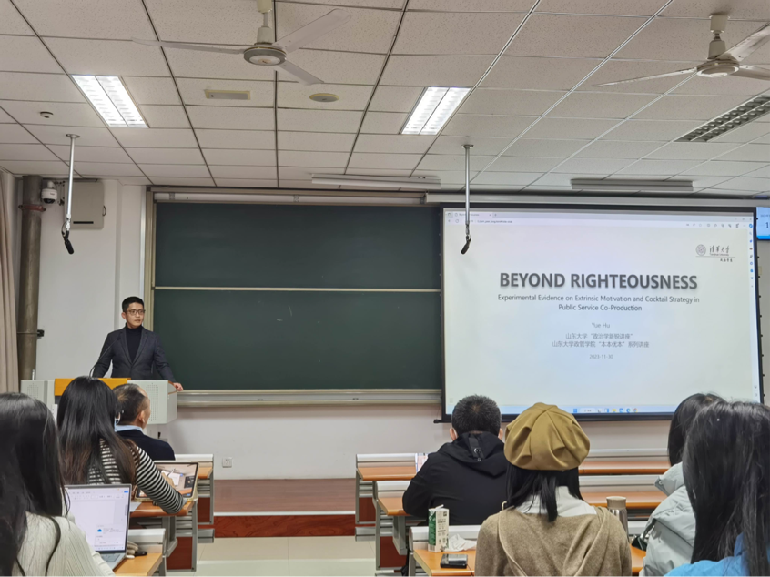 主办、山东省政治学研究会协办的的“道德之外:协同生产同侪激励效应的实验研究”专题讲座于振声苑南楼206教室顺利举行。本次讲座是工口实验室