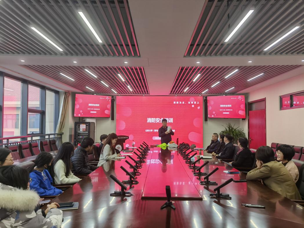 于华岗苑南楼四楼中厅会议室开展教工消防安全培训,青岛校区党工委保卫部段德玺科长、孙垚老师为学院教工进行培训指导,学院党委书记盖玉强参加会议,培训会由学院党委副书记石莹主持。
