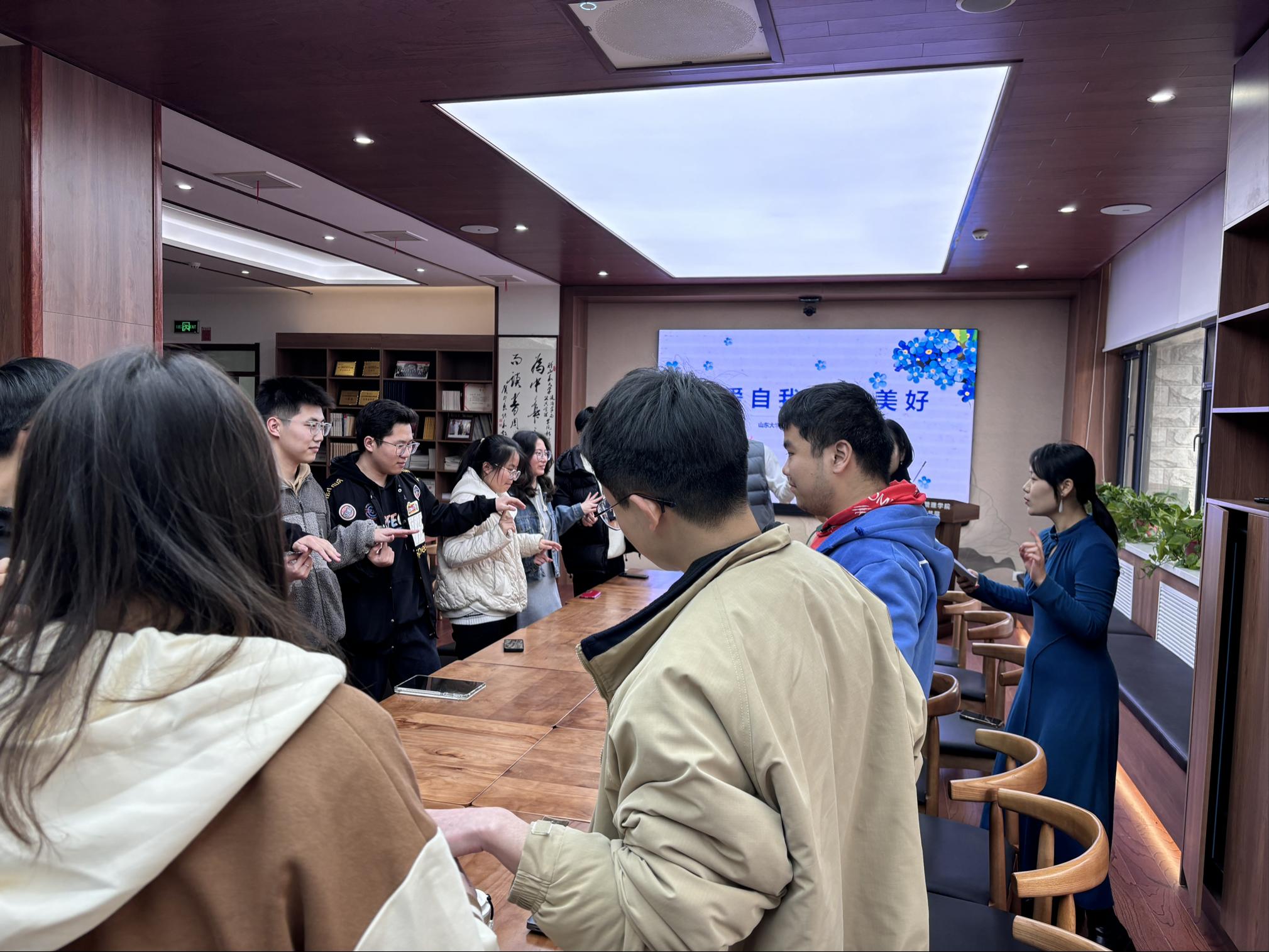 (青岛)心理健康教育与咨询中心专职教师孔涵担任主讲并做团体辅导,学院党委副书记马桂兰、学院辅导员及部分本科生、硕博生参加此次心理活动。