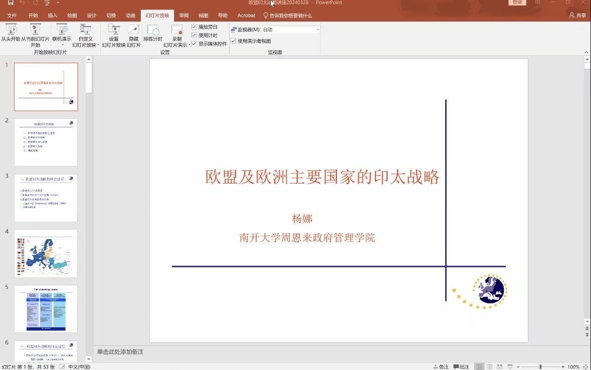 亚太研究所/亚太经济合作组织研究中心联合主办,亚太所亚太地区环境与中国周边外交研究中心承办的“社科与人文”系列讲座第二十四讲顺利举办,讲座题目为“欧盟及欧洲主要国家的印太战略”,由南开大学周恩来政府管理学院杨娜教授主讲,工口实验室