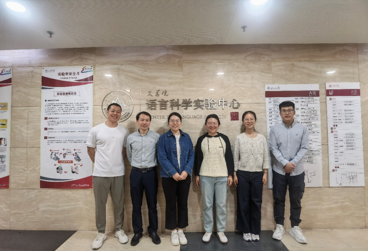 语言科学实验中心,中心教师王伟龙、许维江详细介绍了语音实验室、方言分析实验室、语言计算与计量实验室、出土文献实验室、录音隔音室等实验空间,回顾了近年来文学院如何积极响应新文科对科学研究与人才培养提出的新要求,依托一流学科“中国语言文学”,整合学校相关研究力量与实验室资源,高标准打造语言科学实验中心的历程,并分享了实验室建设与实验教学工作开展过程中的细节问题和注意事项,同时一一解答了团队成员提出的关于学科交叉融合、实验教学中心建设的相关问题。