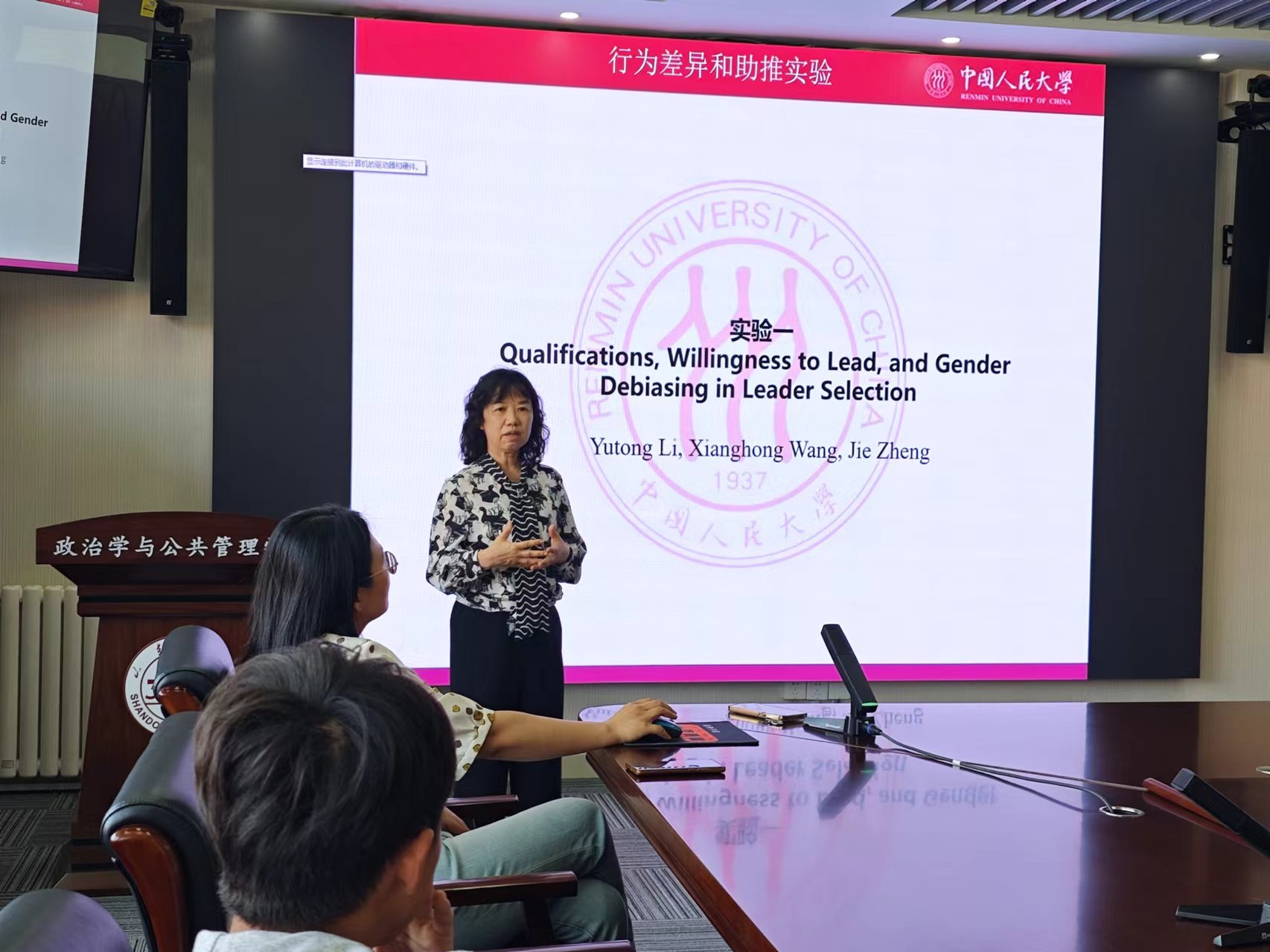 公共管理系望远学术沙龙活动于华岗院南楼顺利举办,讲座题目为“尊重性别差异下促进女性领导力发展——实验研究”,由中国人民大学经济学院王湘红教授主讲。讲座由工口实验室