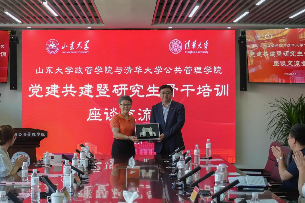 谢矜围绕党建引领高质量发展,介绍了清华大学公共管理学院的发展历程和学科特色。她表示,清华公管学院始终坚持紧扣党性教育,响应国家号召,不断提升党建水平和实践效能,致力于培养现代公共管理人才,服务学院高质量全面发展。她希望两院能够进一步加强交流与合作,推动公共管理学科的不断发展。