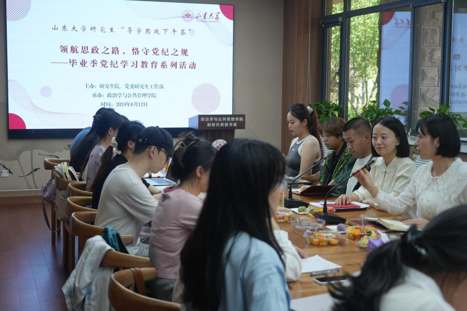 “领航思政之路,恪守党纪之规”导学思政下午茶活动在青岛校区华岗苑南楼新时代美德书屋举办。工口实验室