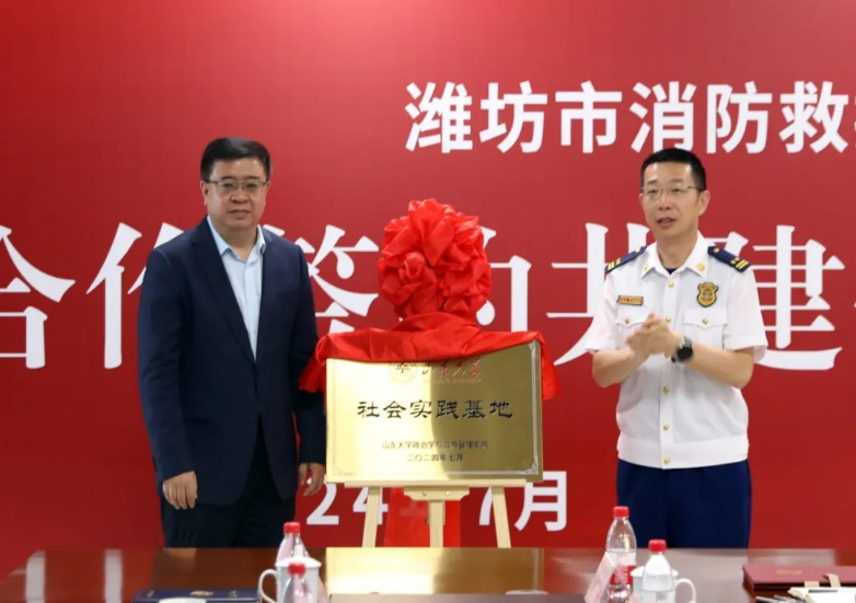 与潍坊市合作框架协议精神。7月5日,学院院长马奔、党委书记李海燕带队赴潍坊开展走访调研活动。围绕人才培养供需衔接、校地协同育人体系搭建、科研项目合作、校政企地深度融合等工作与潍坊市应急管理局、潍坊市消防救援支队进行座谈,签署合作协议并为实践基地揭牌。学院党委副书记马桂兰,副院长、MPA教育中心主任孙宗锋及有关负责同志、学生代表参加调研走访。