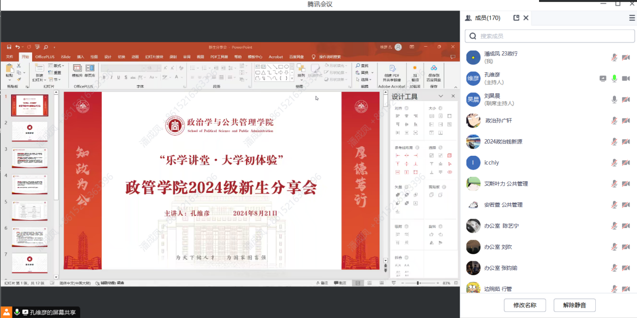 举办“乐学讲堂·大学初体验”2024级新生分享会。分享会采用线上形式进行,邀请优秀学生代表进行经验分享,共吸引270余名本硕新生参与,会议由新生辅导员孔维彦主持。