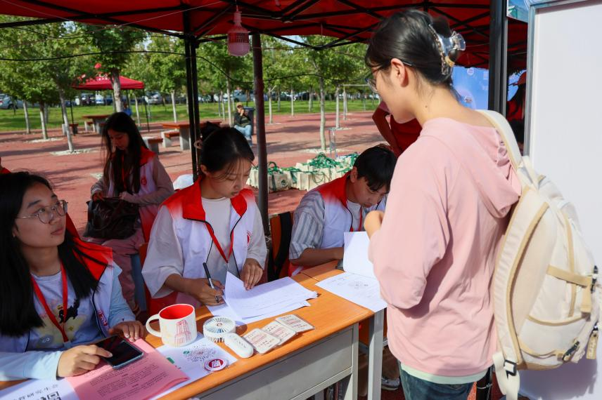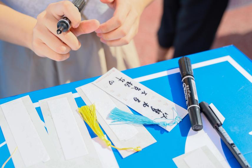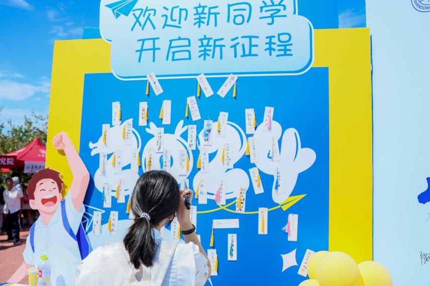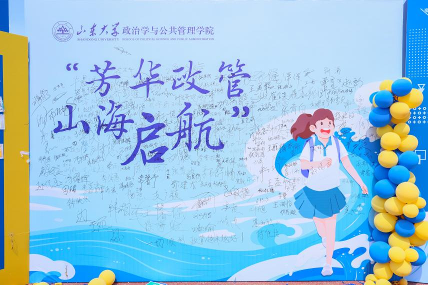 学院在本次迎新中别出心裁地设置了“芳华政管、山海启航”签名墙,完成报到流程后,同学们可以在签名墙上留下自己的姓名,标志着他们正式成为一名政管人,也可以和家长一起在签名墙前合影留念,定格下成为“政管人”、成为“山大人”的美好时刻。同时,学院在签名墙一侧设置了“书签寄语”环节,同学们可以在书签上写下一句话,“以梦为马,不负韶华”“知政为公,厚德笃行”等寄语表达了同学们对自己的期许及成为一名优秀政管人的坚定信念。