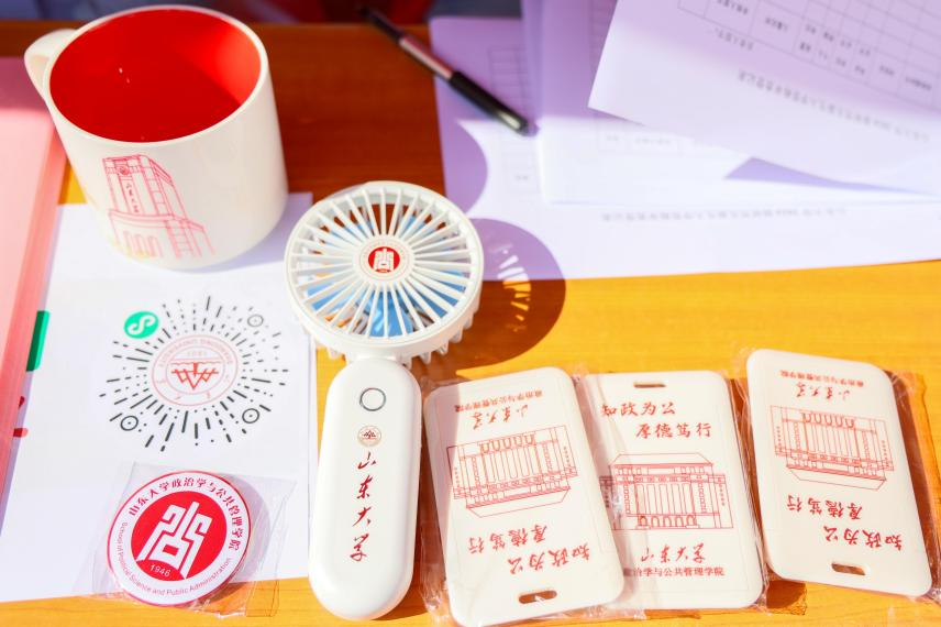 迎新现场设置了制作精美的横幅和展板,展板集中介绍了学院学科建设,生动地展示了学院文化、学术成就以及历届优秀毕业生的风采。学院还为新生精心准备了大礼包,包含带有政管院徽的书签、卡夹、笔记本、小风扇、卡套、鼠标垫等突出学院特色的小礼品,既凸显了实用意义,又饱含对新同学的美好期许,希望每一位政管新生都能感受到家一般的温暖。