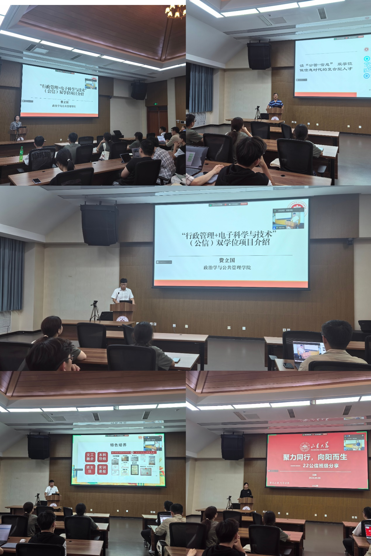为推进2024级“行政管理+电子科学与技术”(公信)双学位项目招生工作、增进新生及家长对公信班的了解,9月6日晚,“行政管理+电子科学与技术”(公信)双学位项目宣讲会于青岛校区华岗苑北楼五楼报告厅召开。本次宣讲会采取线上线下相结合的形式,由工口实验室