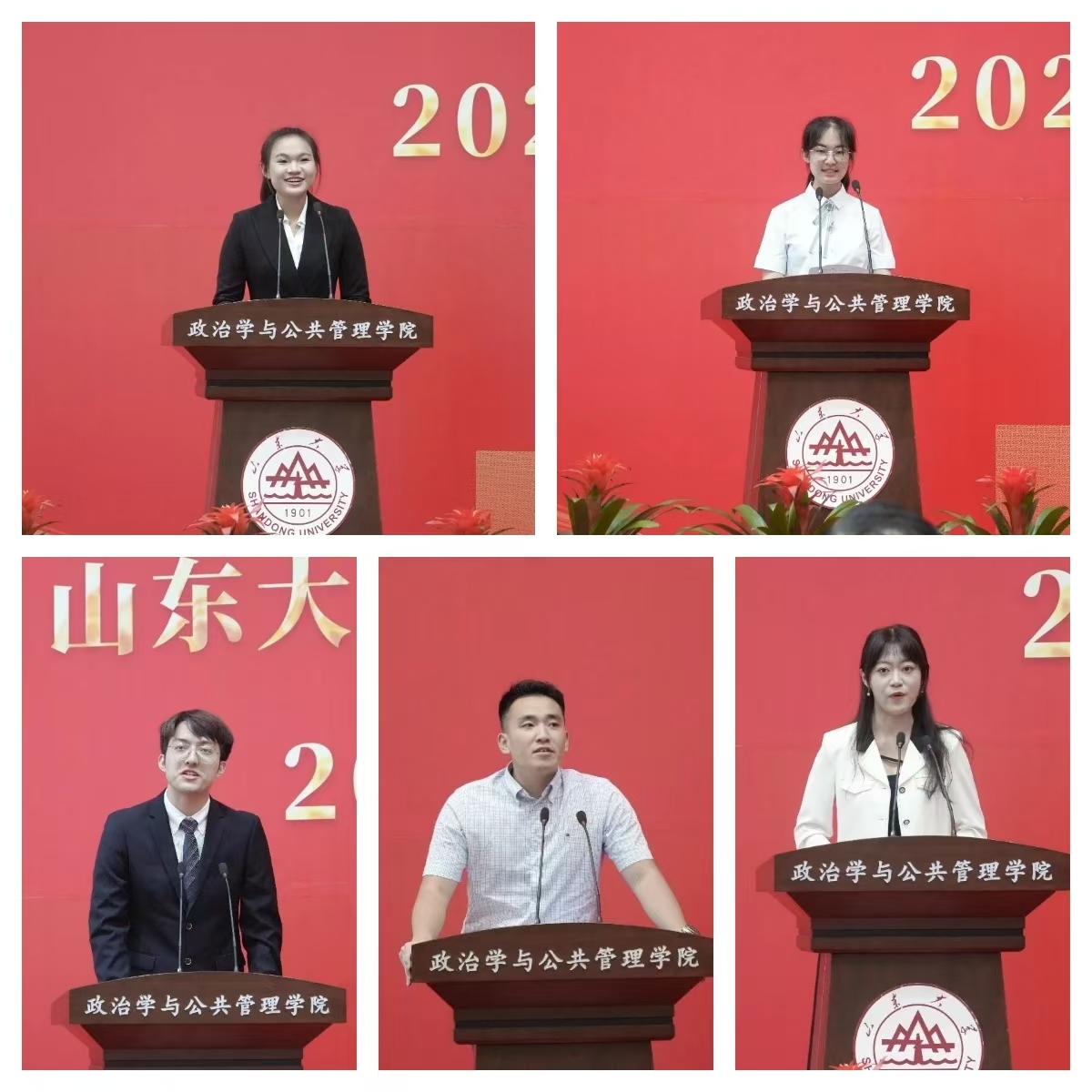 新生代表2024级应急管理专业博士研究生王乐雨回顾了硕士三年在山大政管的学术生活,展望未来的博士之路。她引用翁同龢的“每临大事有静气”,强调修身立德、静心笃行的重要性,提出了正当管己、正当管业、正当管家国的共同目标,劝勉全体政管学子在学院提供的广阔平台上培育学术情怀,共筑学术梦想,肩负家国责任,贡献中国智慧。