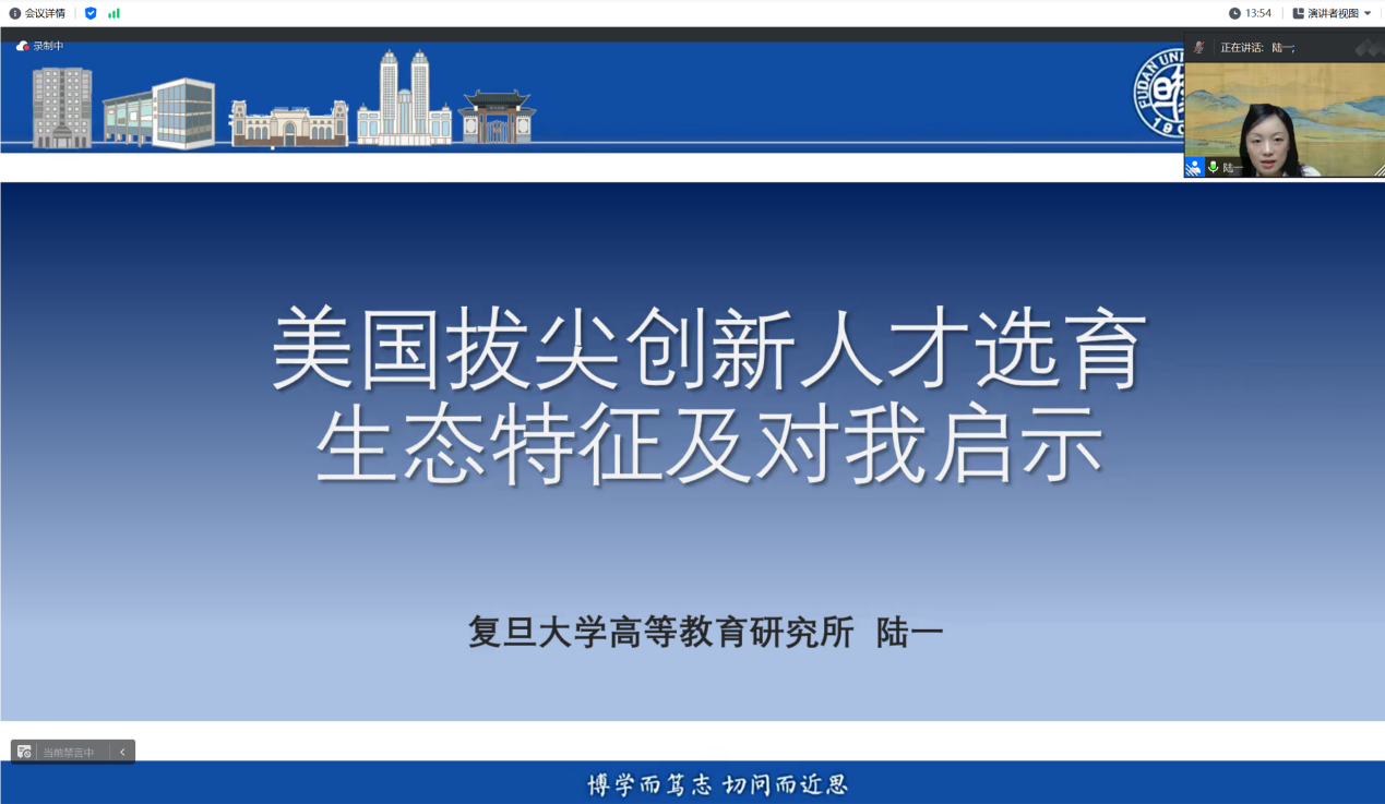 亚太研究所主办,亚太所亚太国家社会与人文研究中心承办的“社科与人文”系列讲座第二十八讲在线上顺利举办,讲座题目为“美国拔尖创新人才选育生态特征及对我启示”,由复旦大学高等教育研究所副所长陆一研究员主讲。讲座由工口实验室