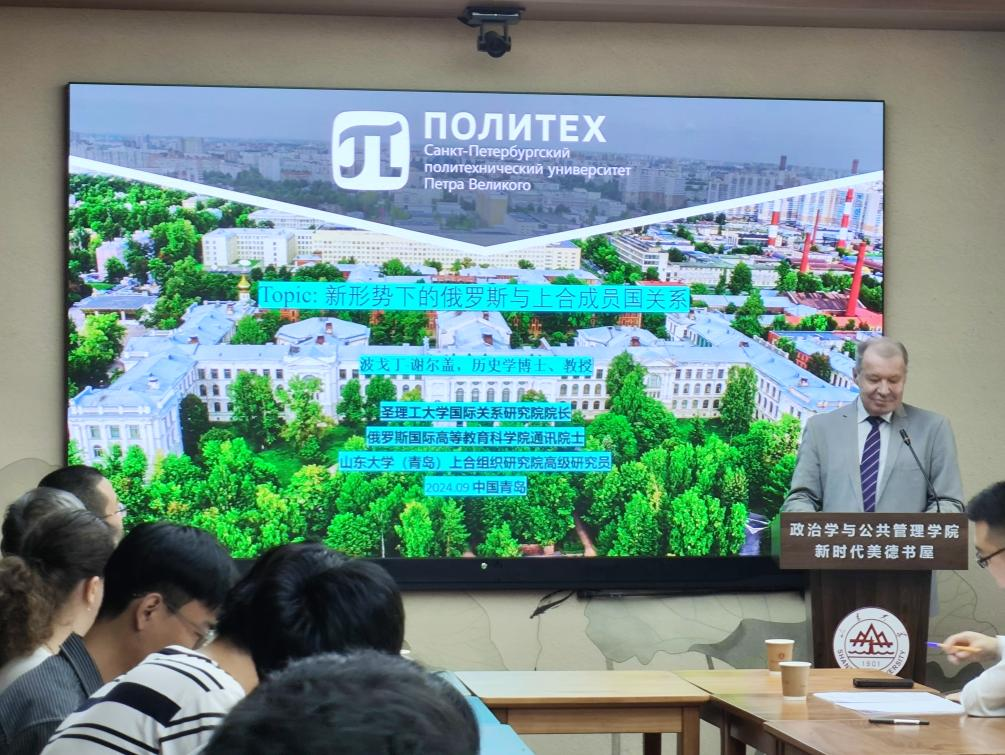 公共安全研究院、中国—上海合作组织经贸学院联合主办的“合作与发展”系列讲座第十四期在华岗苑南楼一楼新时代美德书屋顺利举办。本期讲座主题为“俄罗斯与上合成员国的关系”,由圣彼得堡彼得大帝理工大学国际关系学院院长,学术期刊《俄罗斯在全球》及《国际关系与文化对话》总编辑Sergey Nikolaevich Pogodin教授主讲。工口实验室