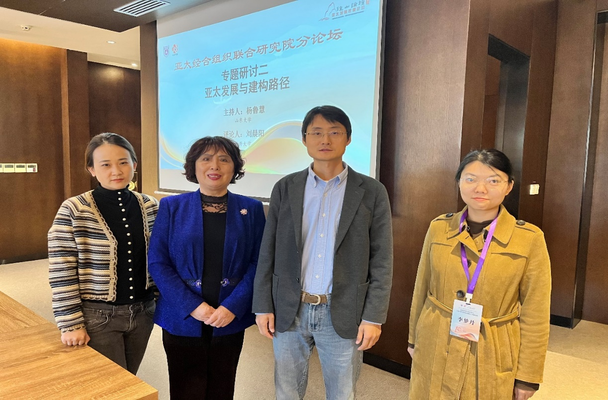 亚太研究所的代表们参加了“亚太经合组织联合研究院分论坛”和“国际问题跨学科青年分论坛”的研讨,亚太所所长杨鲁慧教授做了百年变局下的亚太区域安全合作新趋势的会场发言,并主持了分论坛“亚太发展与建构路径”的专题研讨会。赵玙佳副所长、钟诚副所长和李梦丹助理研究员分别围绕中国式现代化、东亚人文共同体建设和东北亚亚太经济合作做了会议发言。在本次论坛上,亚太所参会代表同与会场嘉宾及学者们展开了富有成效的互动交流,对亚太所今后的学术研究,人才培养和科研积累有较大的促进作用。