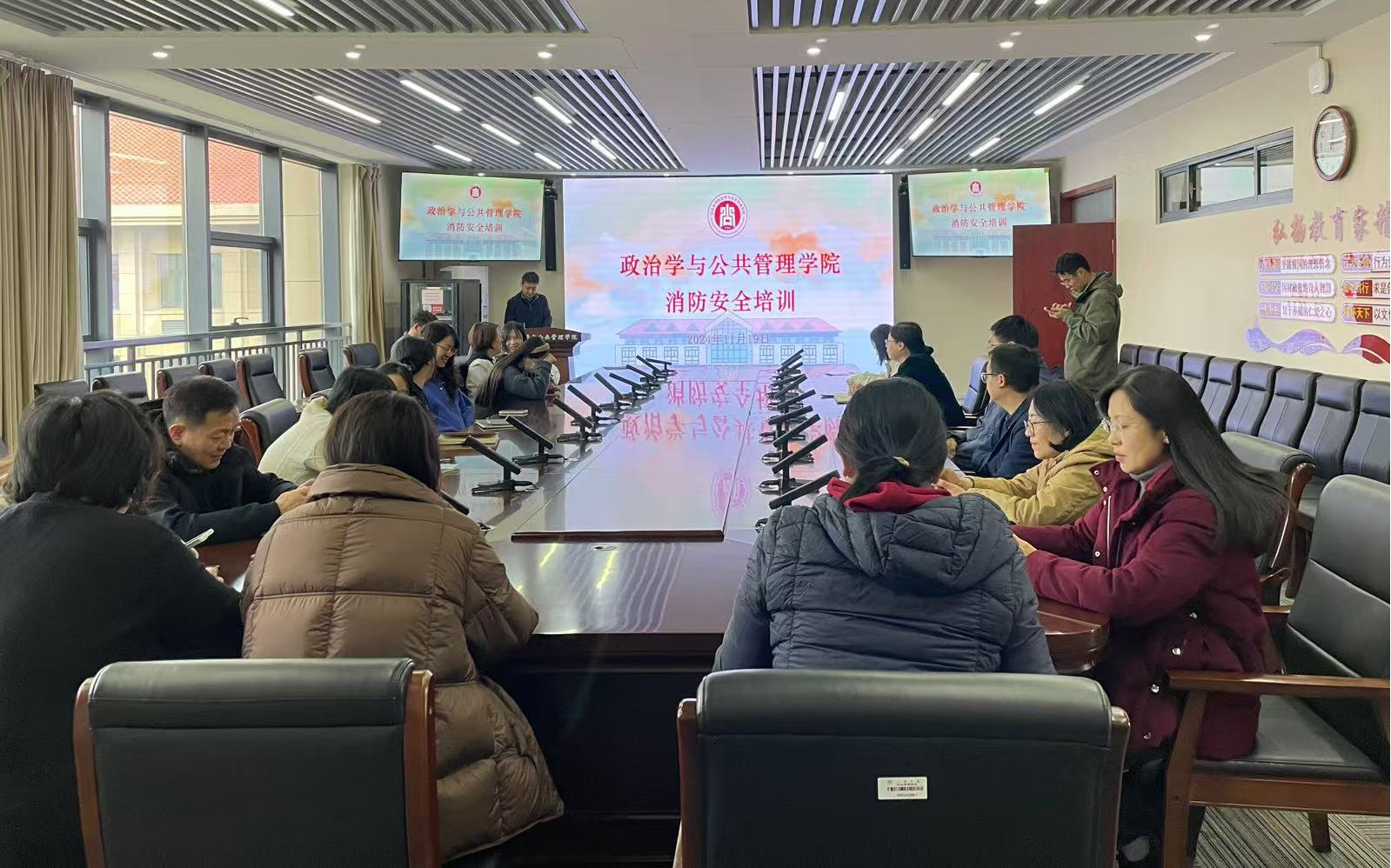 于华岗苑南楼436会议室开展消防安全培训。青岛校区党工委保卫部(安全管理处)孙垚老师为学院师生进行培训指导,培训会由学院党委副书记石莹主持。